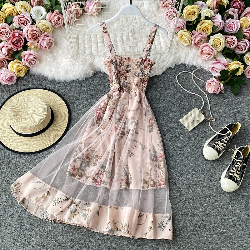 Cheap Dresses, Buy Quality Women’s Clothing Directly from China Suppliers:The new French girl temperament show thin gauze dress dress of a word shoulder straps that wipe a bosom