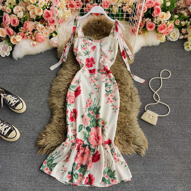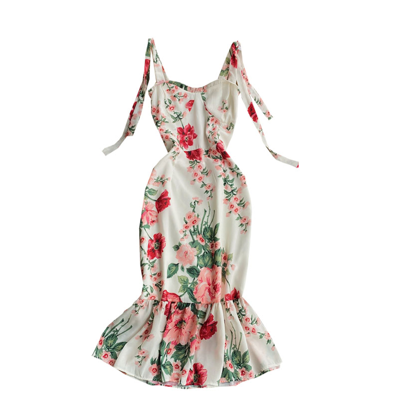 Cheap Dresses, Buy Quality Women’s Clothing Directly from China Suppliers:First love skirt to show thin sen is condole belt dress accept waist high printing fishtail skirt