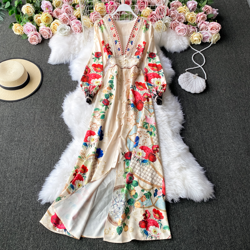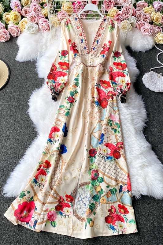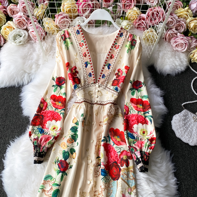 Cheap Dresses, Buy Quality Women’s Clothing Directly from China Suppliers:V neck dress fashion temperament show thin waist, receive a word skirt is a fairy large pendulum dress
