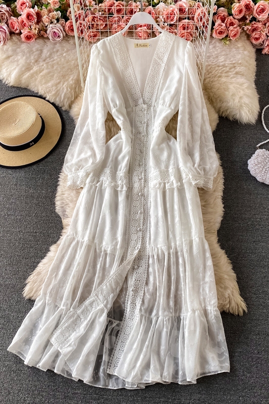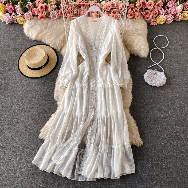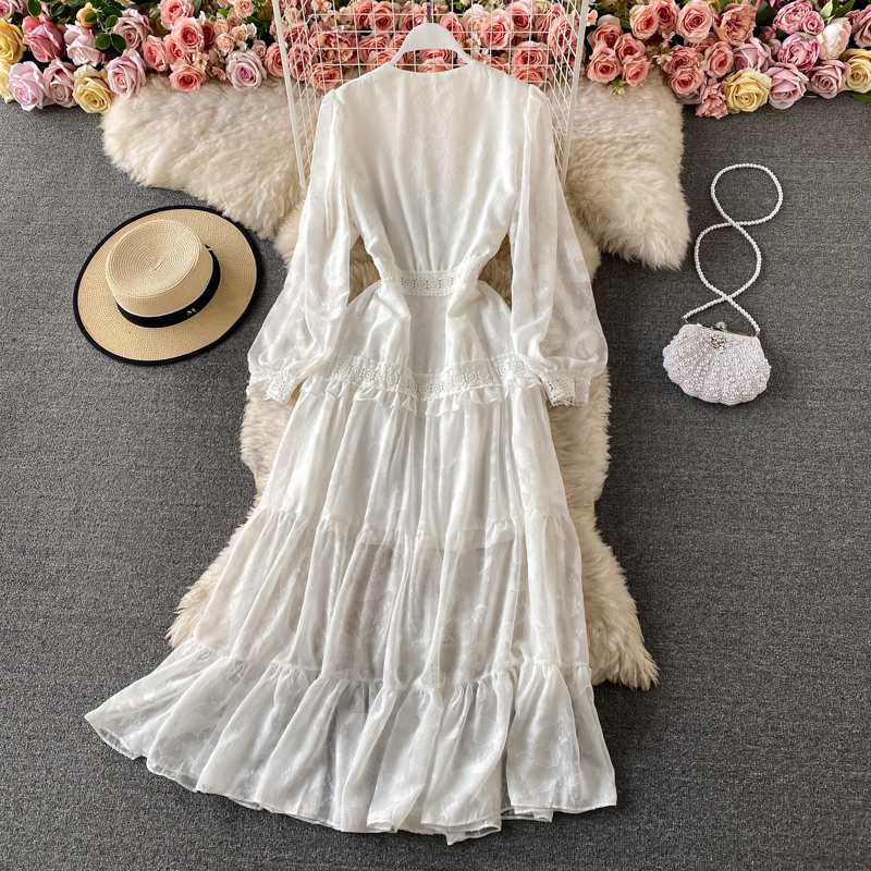 Cheap Dresses, Buy Quality Women’s Clothing Directly from China Suppliers:V neck dress aristocratic temperament big pendulum lightly cooked long sleeve cultivate one’s morality dress