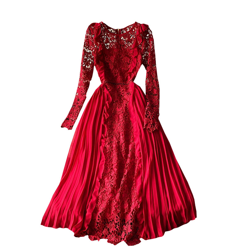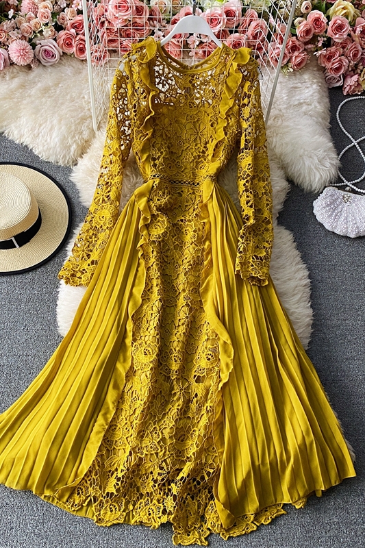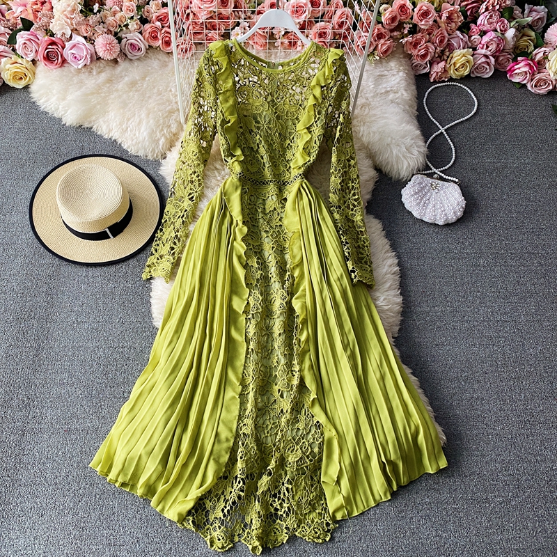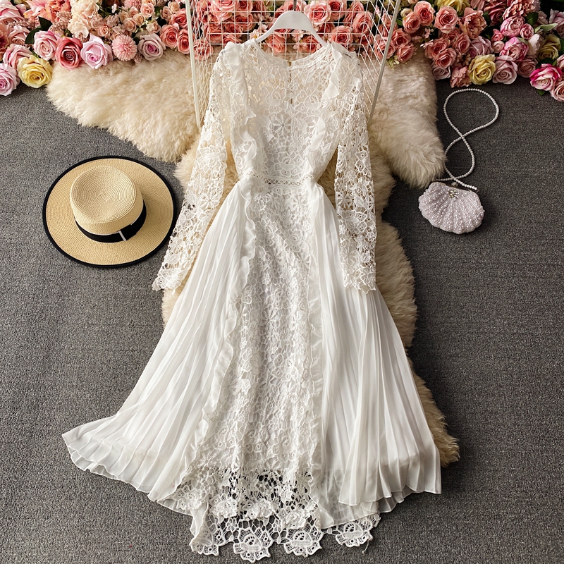 Cheap Dresses, Buy Quality Women’s Clothing Directly from China Suppliers:French girl gentle wind long skirt chic fairy fairy sweet lace stitching chiffon skirt pleated dress