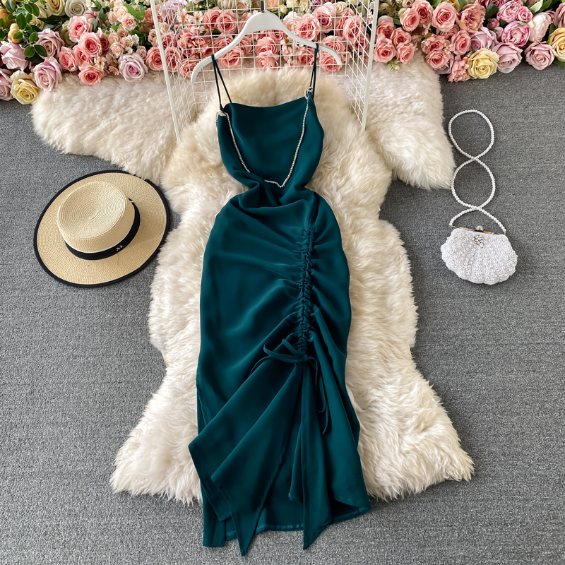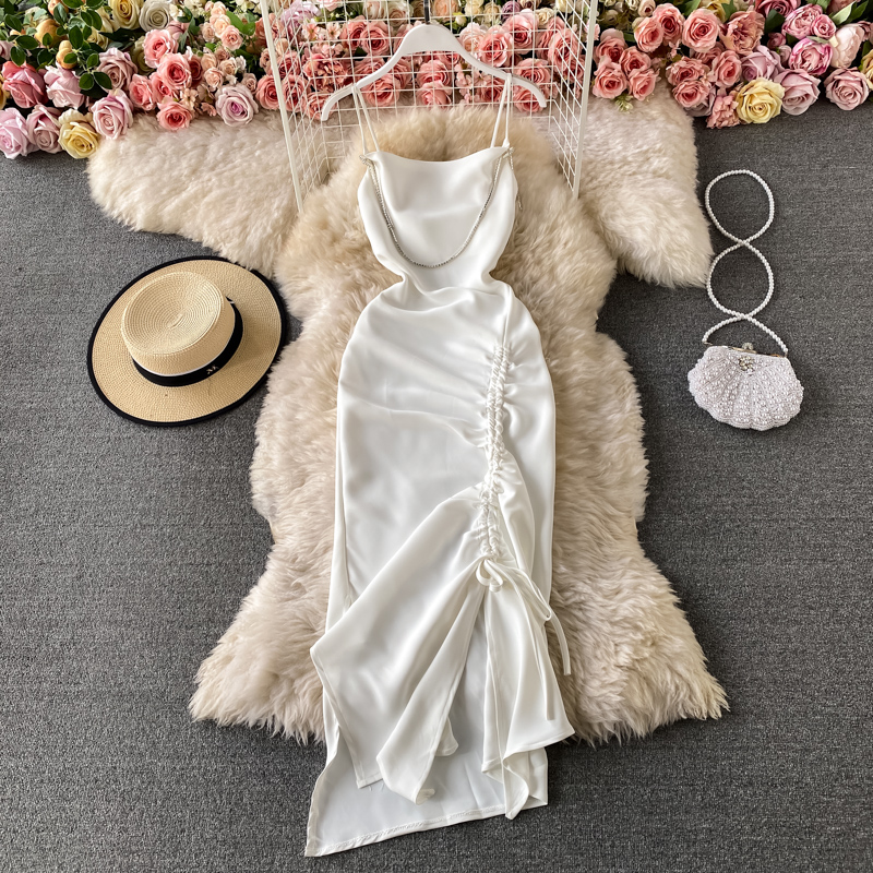 Fashion sexy annual open fork cultivate one’s morality show thin dress summer backless smoked rope sling women dress