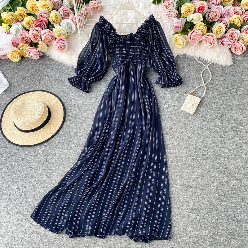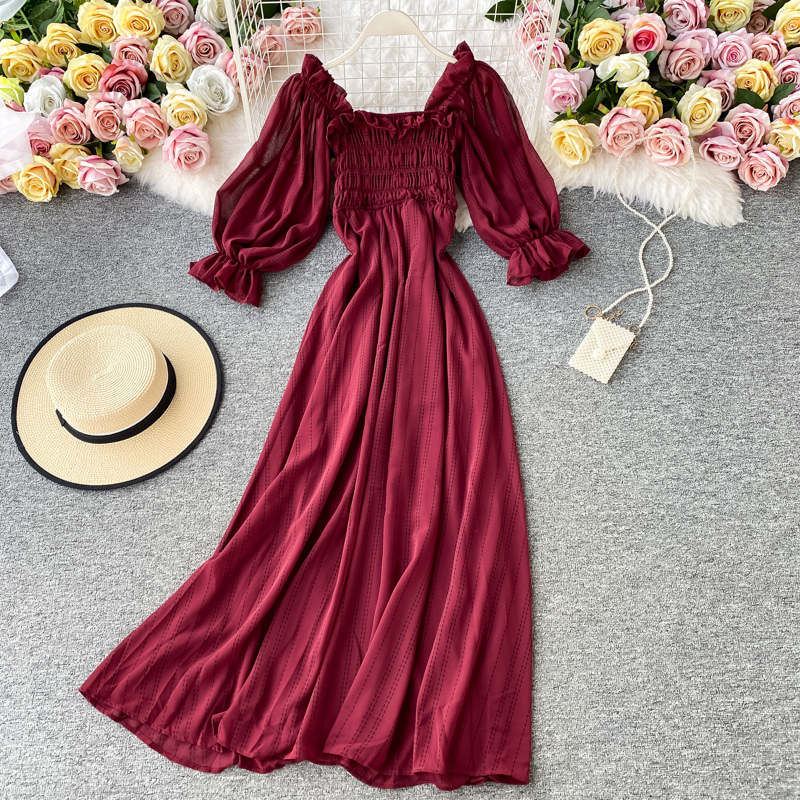 Collect waist party brought summer dress female hubble-bubble sleeve fairy long skirt