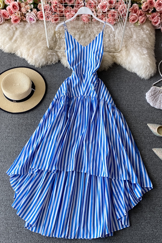 Queen resort irregular stripe dress cultivate one’s morality show thin straps dress skirt seaside holiday beach dress
