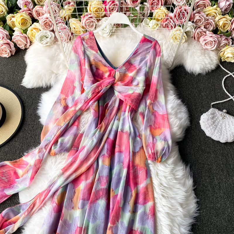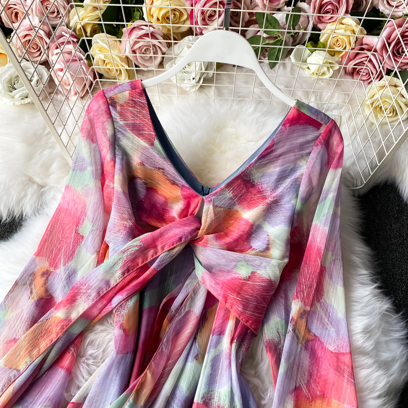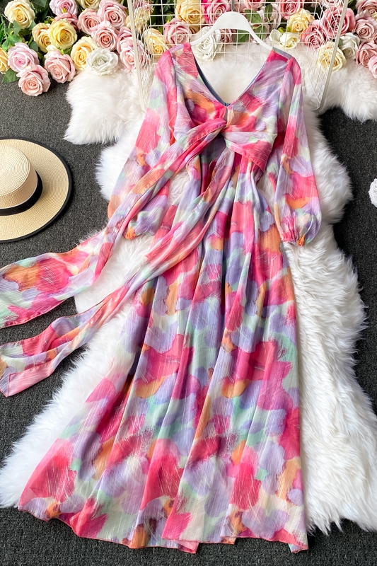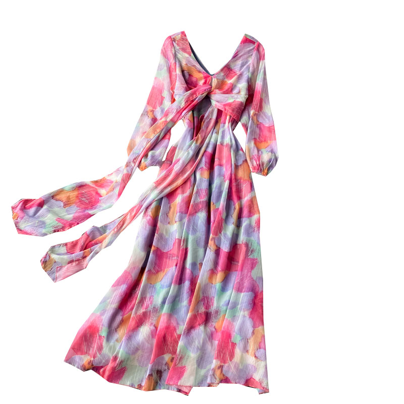 Cheap Dresses, Buy Quality Women’s Clothing Directly from China Suppliers:Chiffon dress women long sleeve the spring and autumn period and the new French v neck posed a word show thin waist long skirt