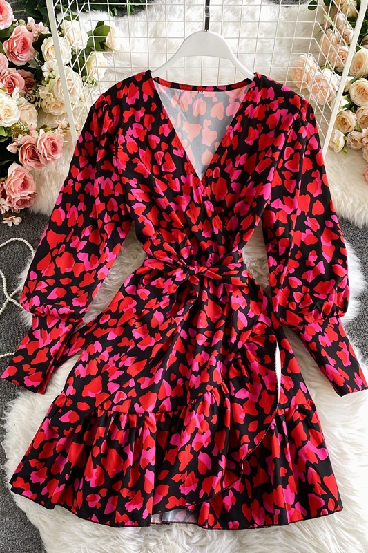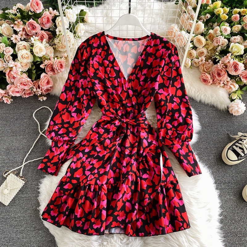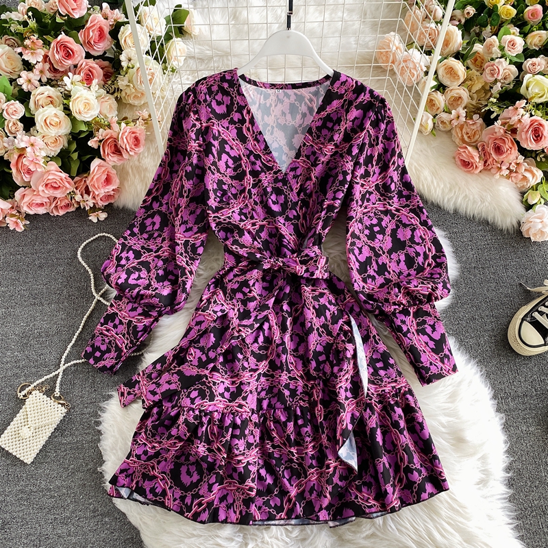 Cheap Dresses, Buy Quality Women’s Clothing Directly from China Suppliers:Printed ruffled dress fashion temperament is bound to receive A word skirt show thin waist broken flower skirt