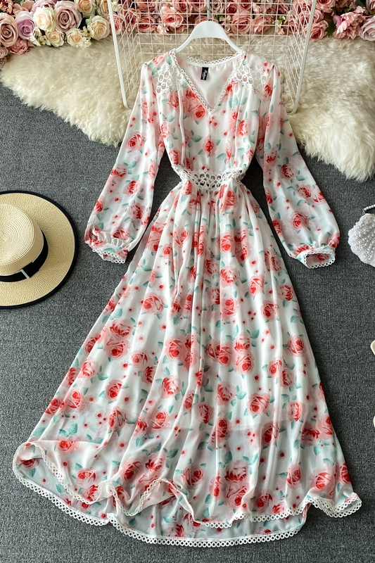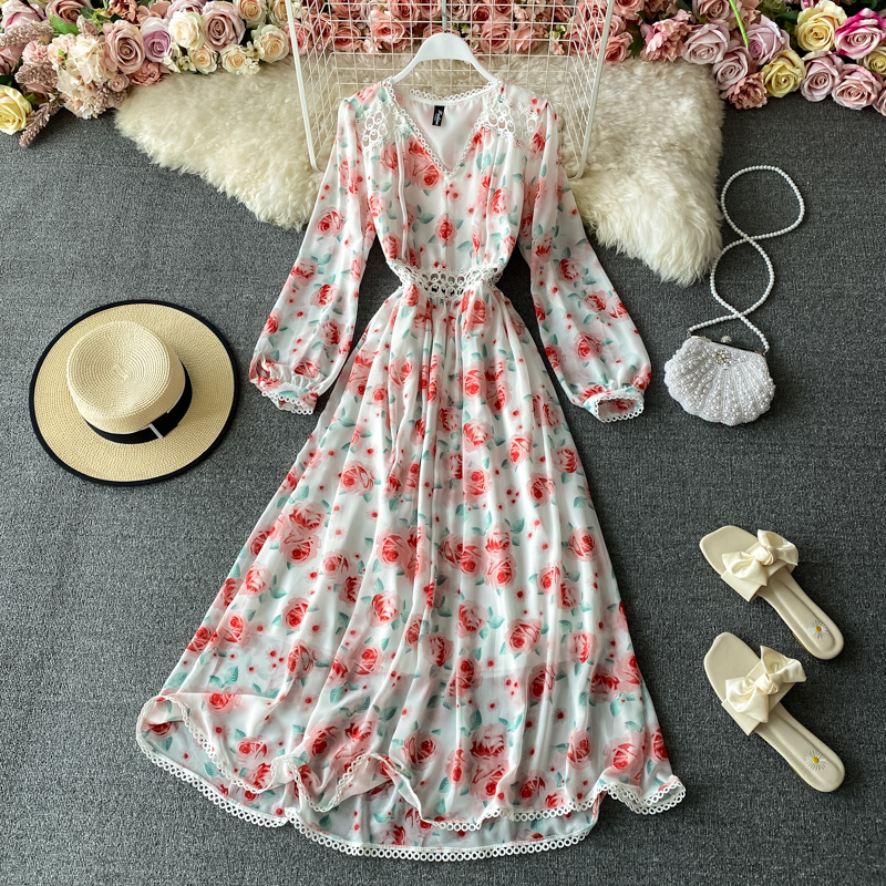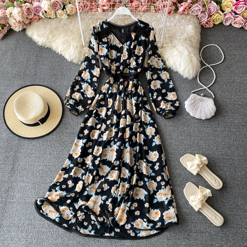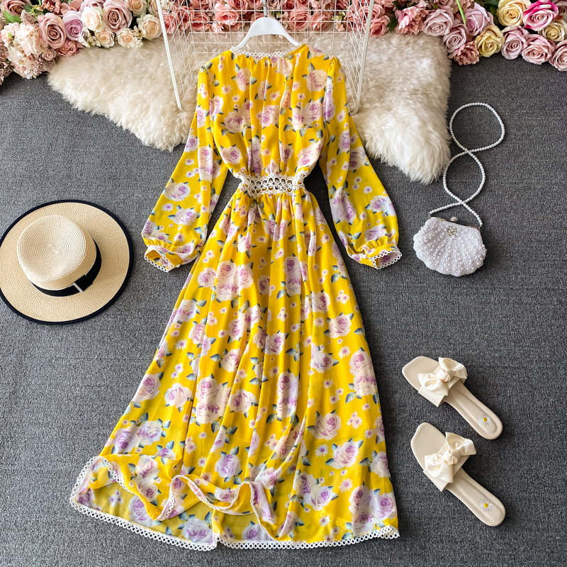 Cheap Dresses, Buy Quality Women’s Clothing Directly from China Suppliers:Spring and Autumn New Korean Temperament Goddess Fan Retro V neck Waist Waist Thin and Large Swing Dress