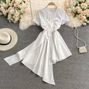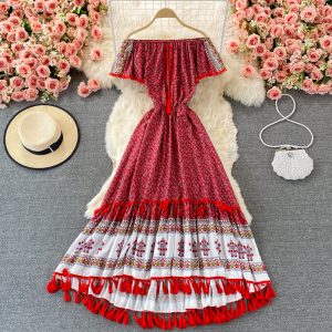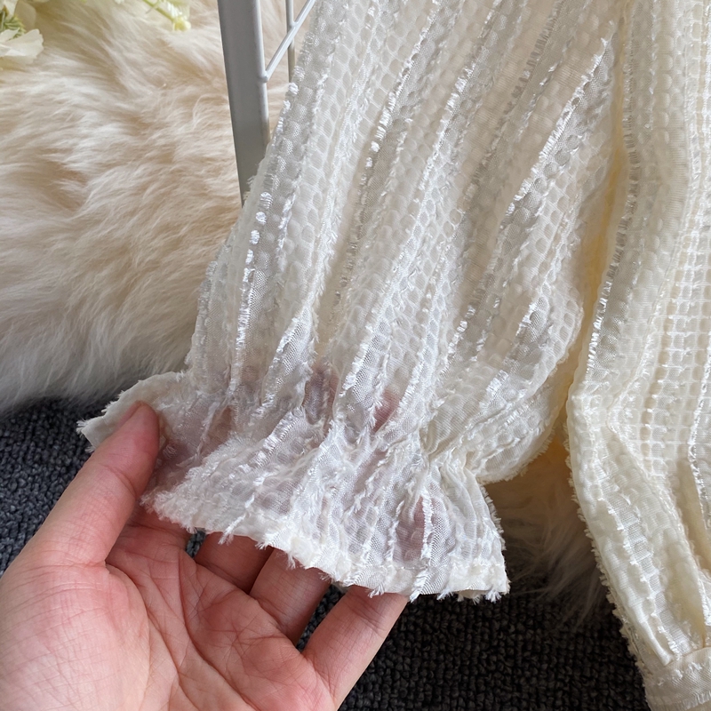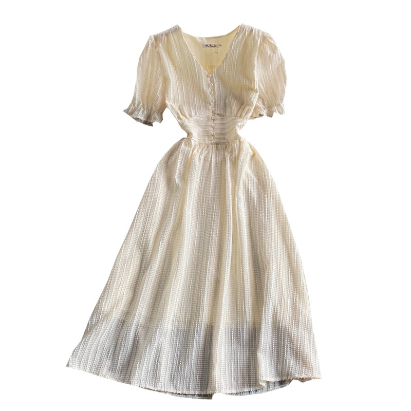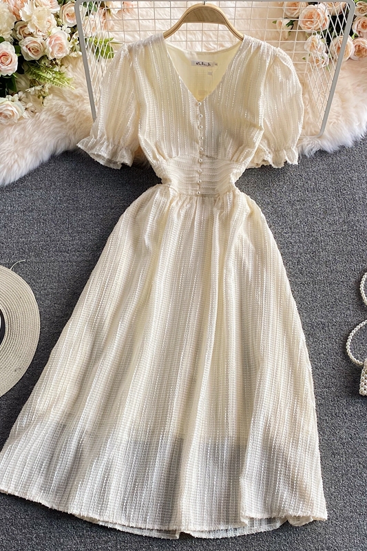 Cheap Dresses, Buy Quality Women’s Clothing Directly from China Suppliers:French Style Retro Gentle Style Dress Summer V neck Puff Sleeve Waist Slimming Line Skirt Swing Long Dress