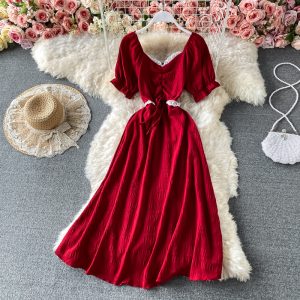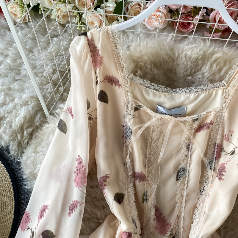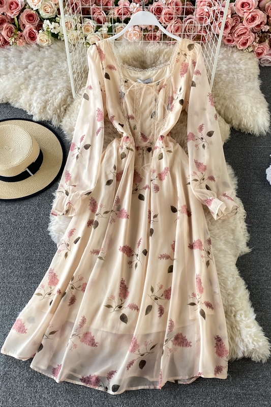 Cheap Dresses, Buy Quality Women’s Clothing Directly from China Suppliers:New Square Collar Elegant Chiffon Printed Elegant High Waist Mid Length Bohemian Pastoral Style Dress