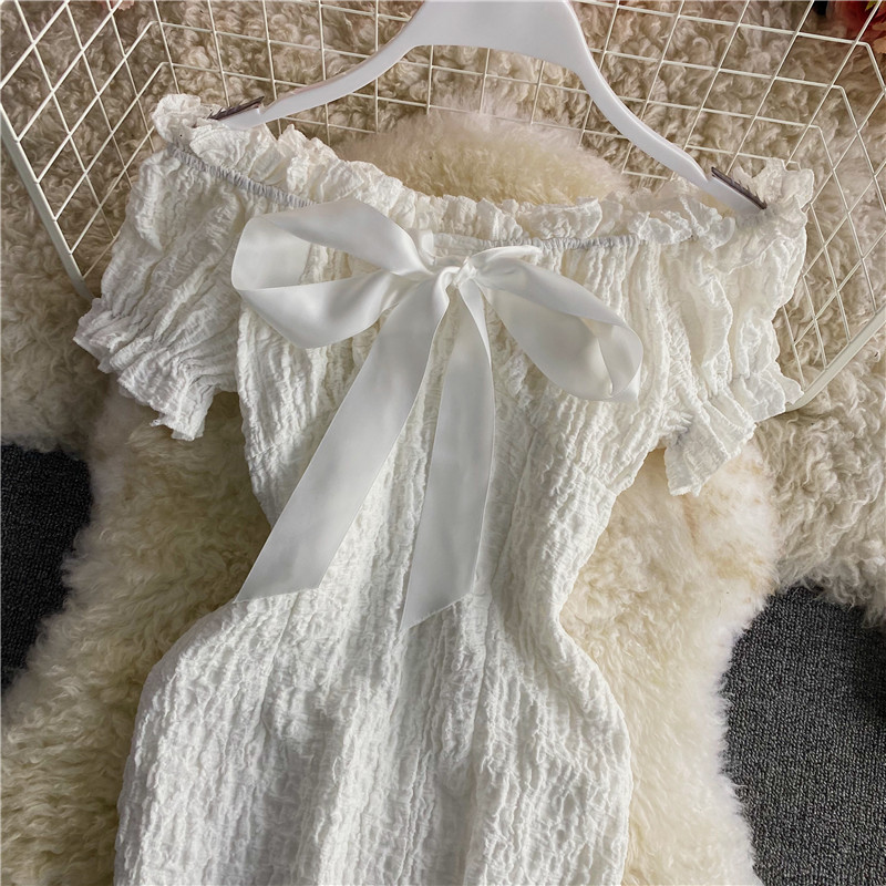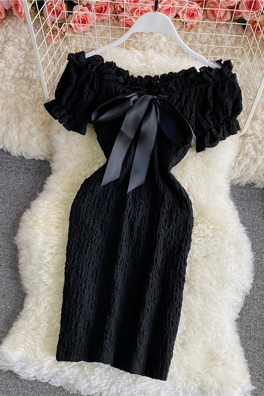 Cheap Dresses, Buy Quality Women’s Clothing Directly from China Suppliers:Retro Sweet Cinched Slimming off Shoulder Backless Dress Summer Small High Waist Short Sleeve Short Hip Skirt