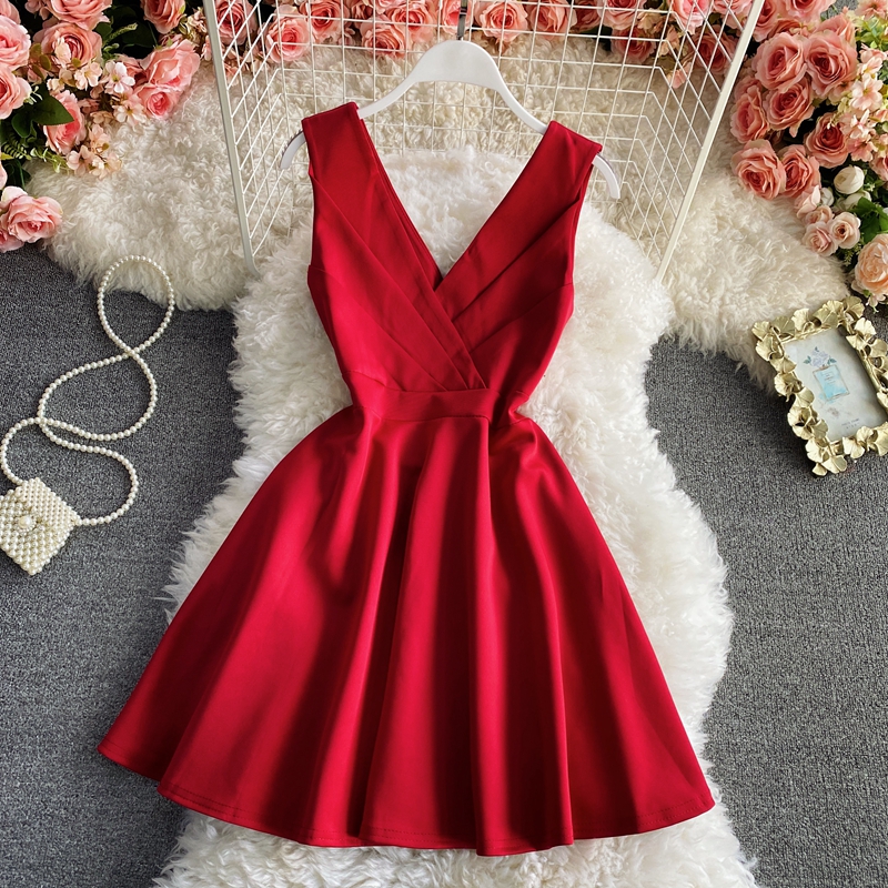 Cheap Dresses, Buy Quality Women’s Clothing Directly from China Suppliers:Evening Dress New Elegant Slimming Small V neck Dress Sleeveless Socialite Dress Host Short Dress