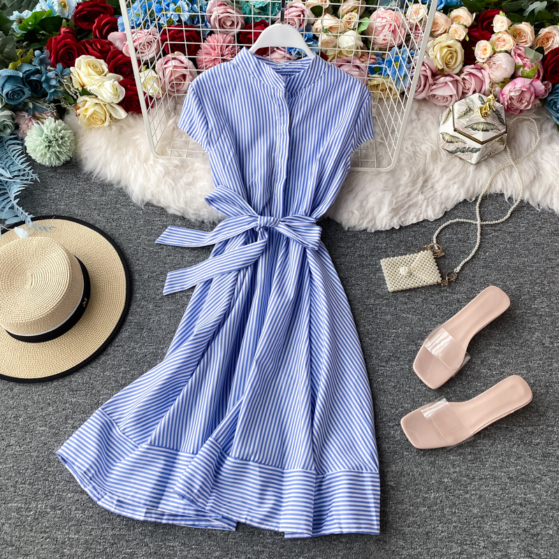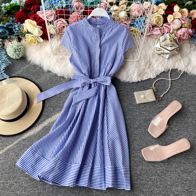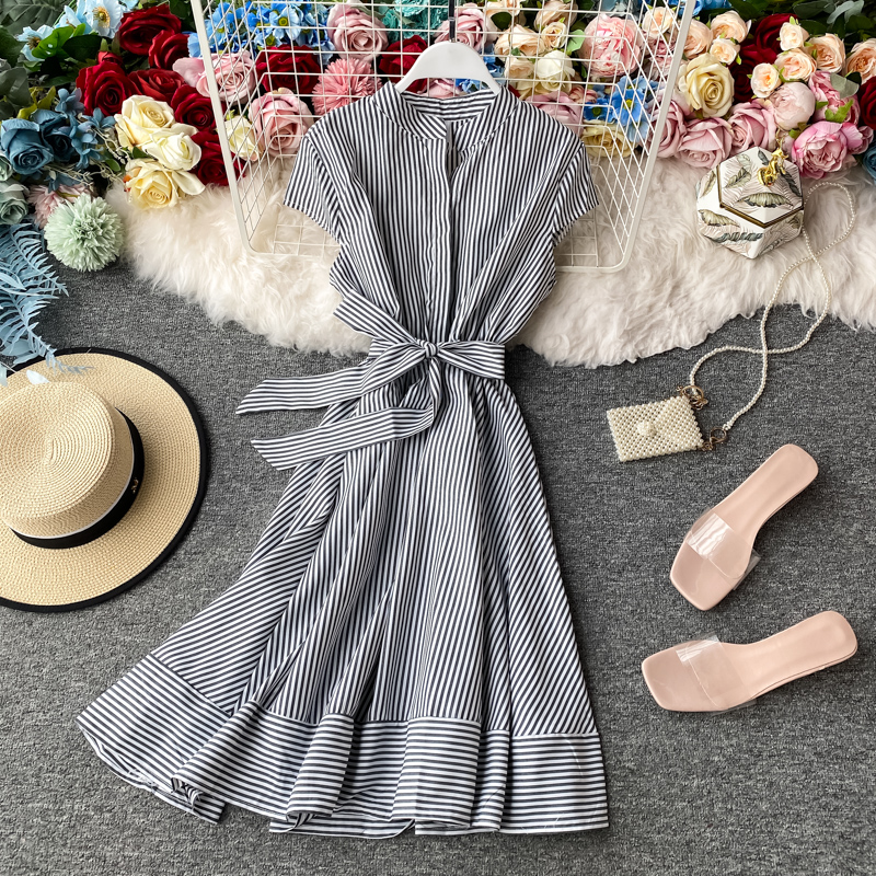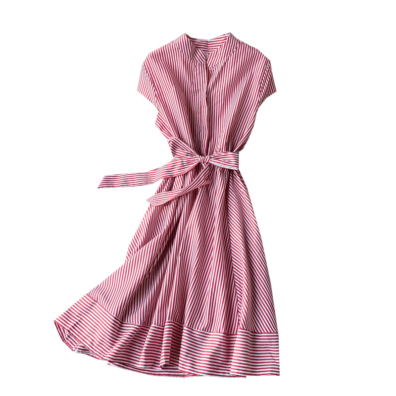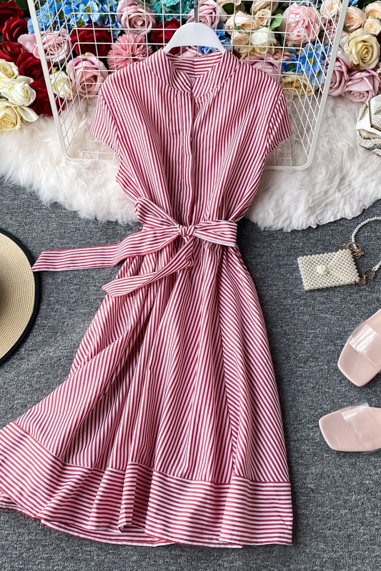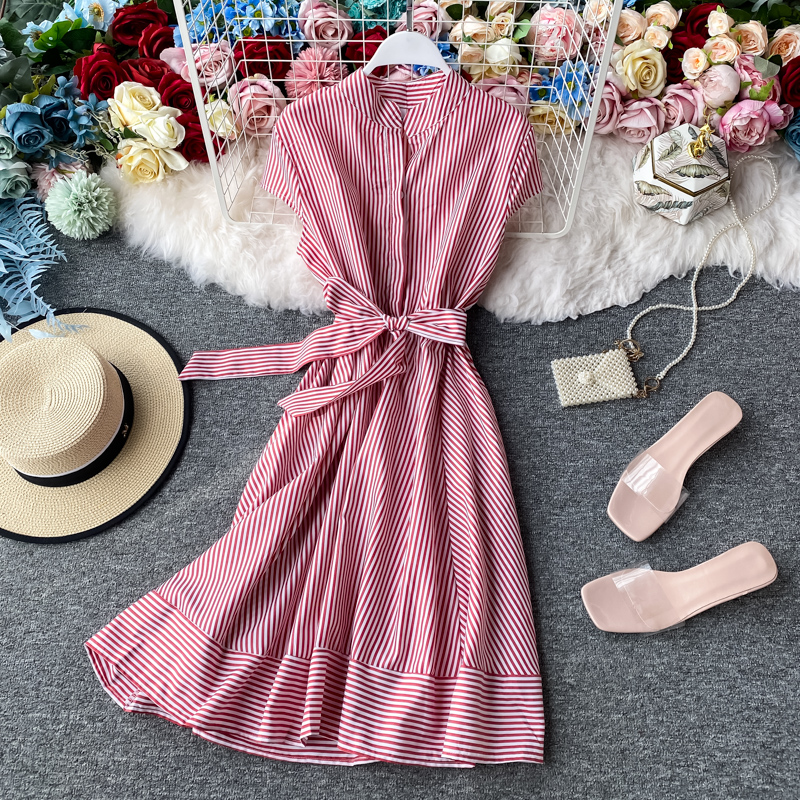 Cheap Dresses, Buy Quality Women’s Clothing Directly from China Suppliers:French Retro Red Striped Lightly Mature Dress Short Sleeve Women’s Summer Small Waist Slimming Temperament Short Skirt