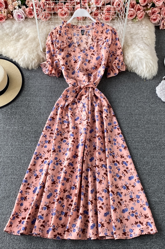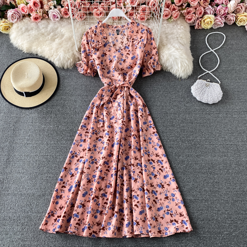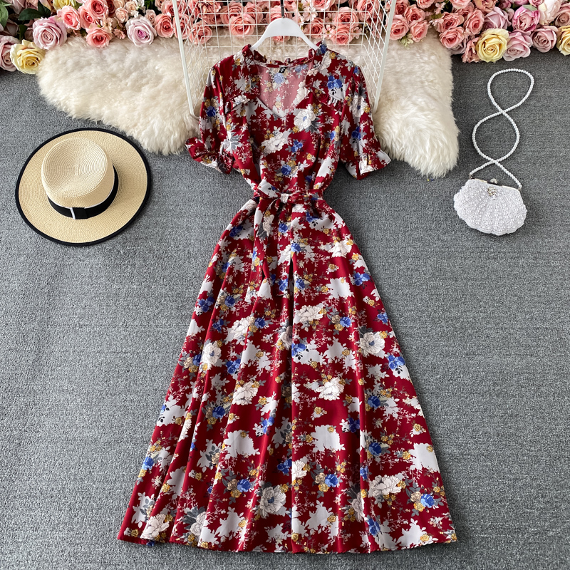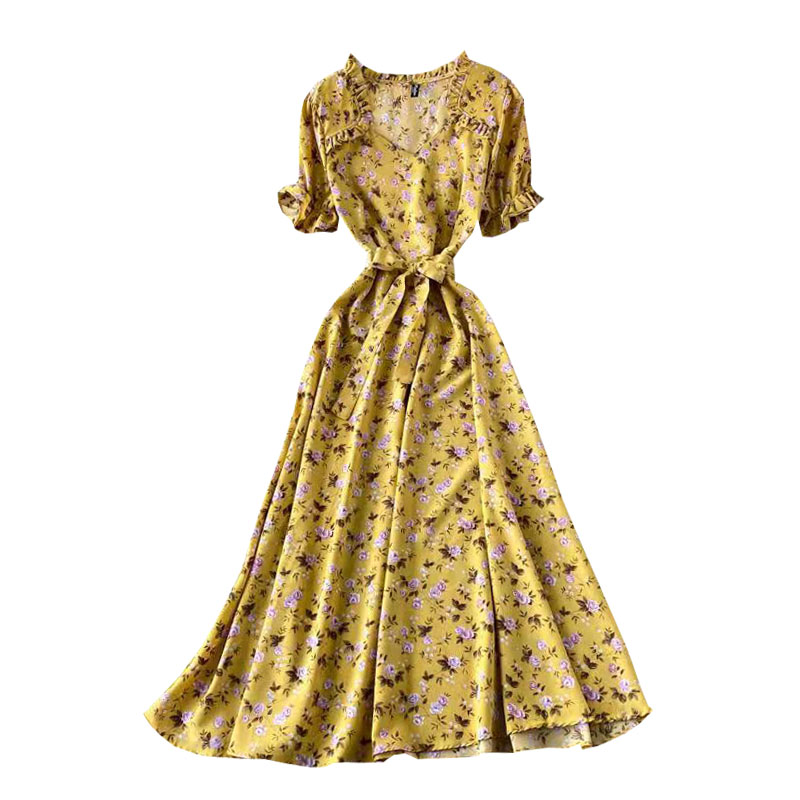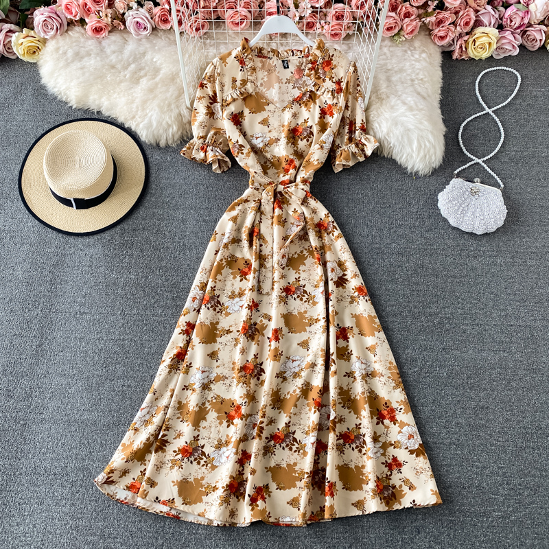 Cheap Dresses, Buy Quality Women’s Clothing Directly from China Suppliers:French Style Retro Square Collar Floral Chiffon Dress Puff Sleeve Waist Tight Slimming Mori Super Fairy Swing Short Sleeve Dress