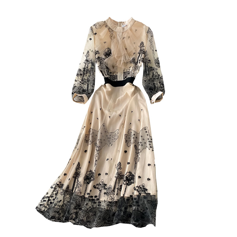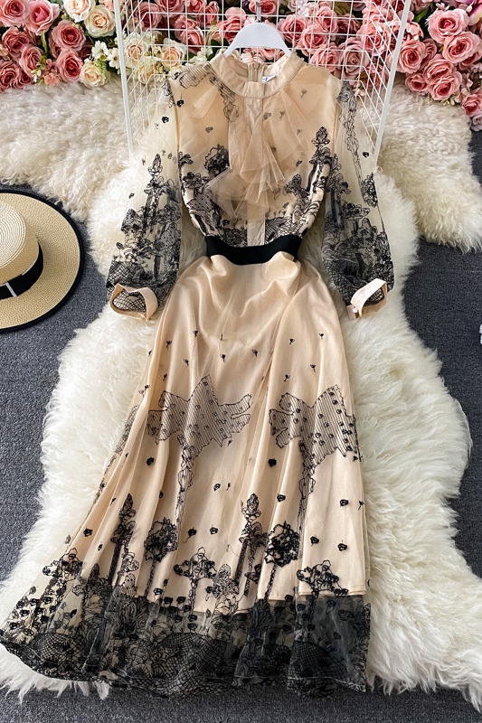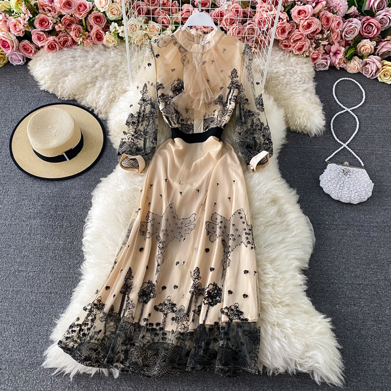 Cheap Dresses, Buy Quality Women’s Clothing Directly from China Suppliers:Spring French Style Vintage Court Style Embroidered Ruffled Waist Slimming Temperament Goddess Style Lace Dress