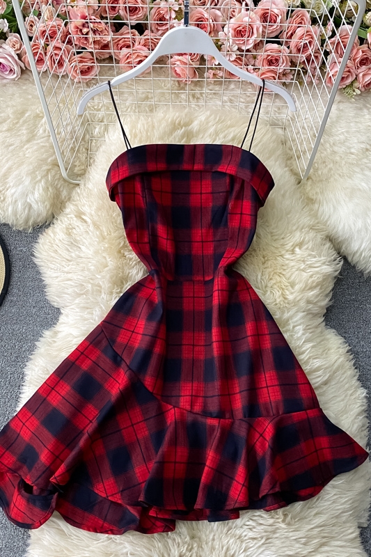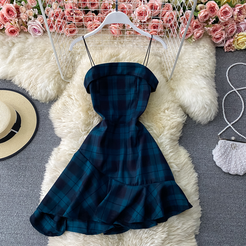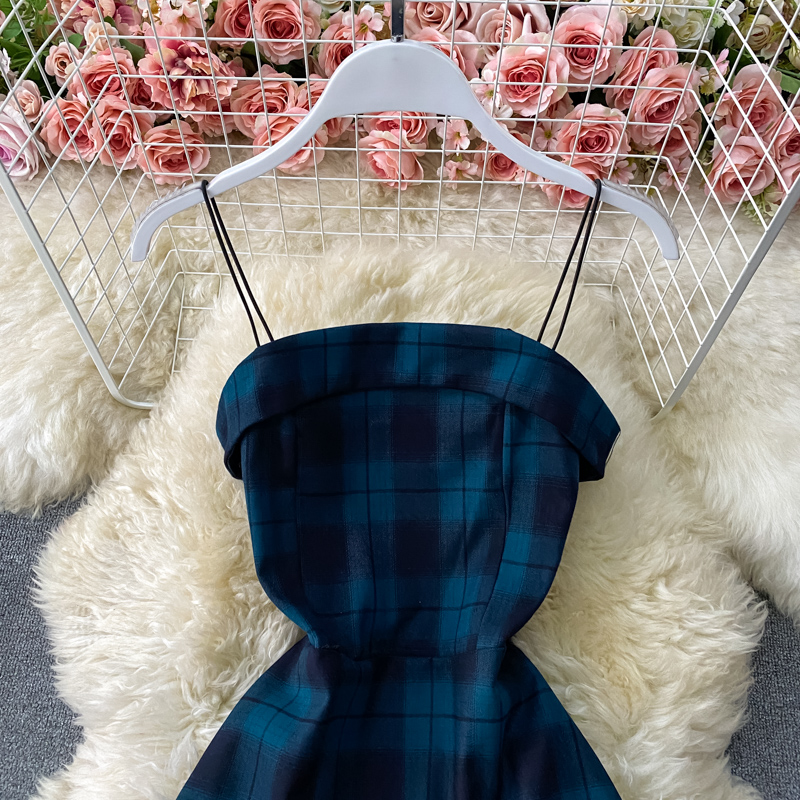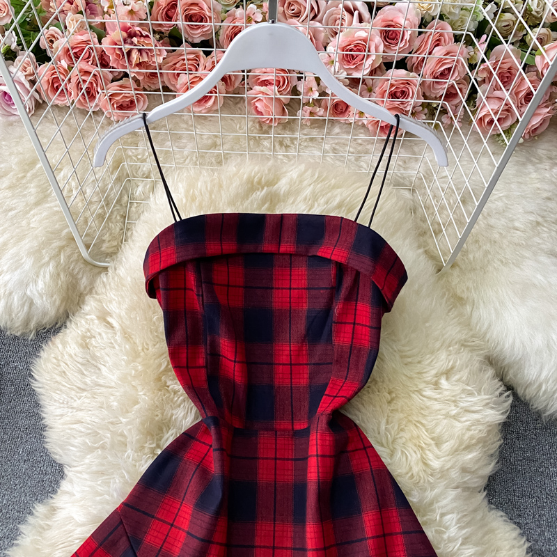 Cheap Dresses, Buy Quality Women’s Clothing Directly from China Suppliers:French First Love A line Dress Dark Plaid Waist Tight Small Suspender Dress Slim Slimming Elegant Dress Summer