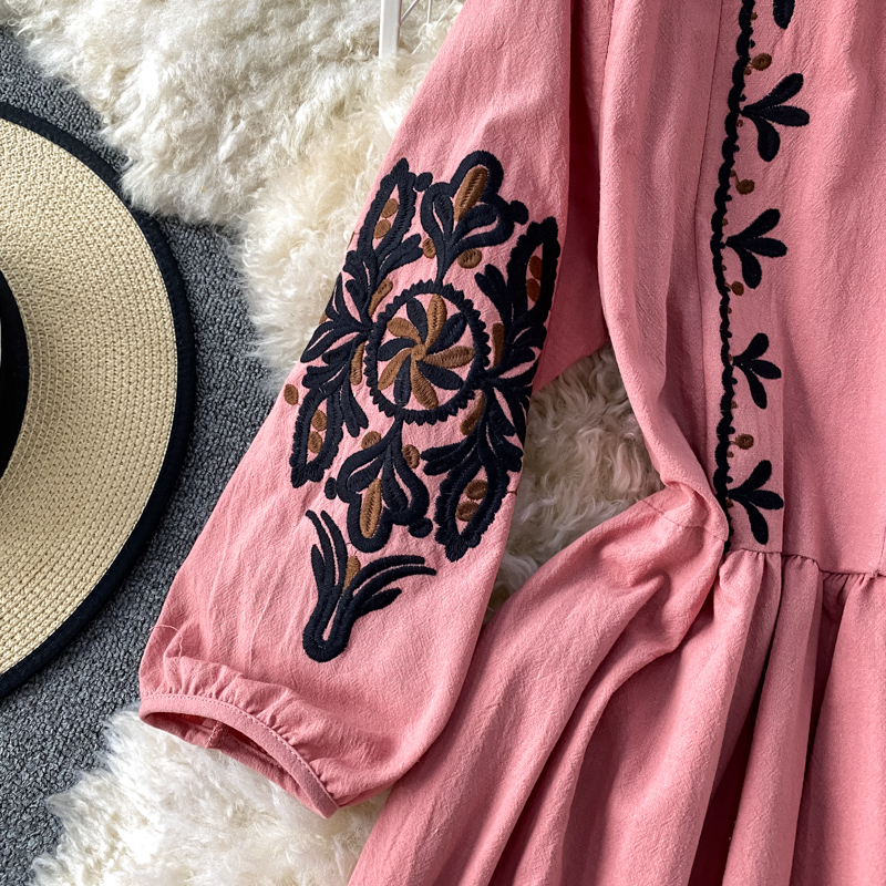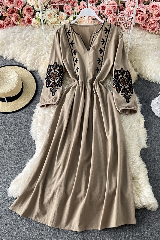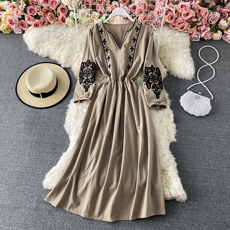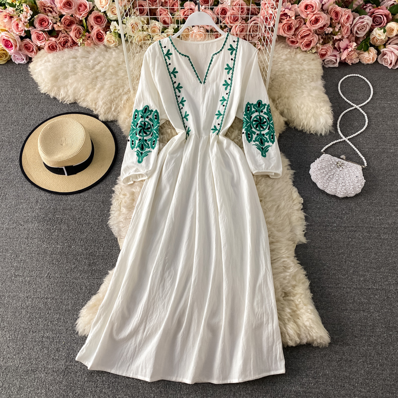 Cheap Dresses, Buy Quality Women’s Clothing Directly from China Suppliers:Retro style elegant art travel long skirt heavy embroidery flower beach skirt loose high waist lantern sleeve dress
