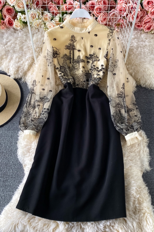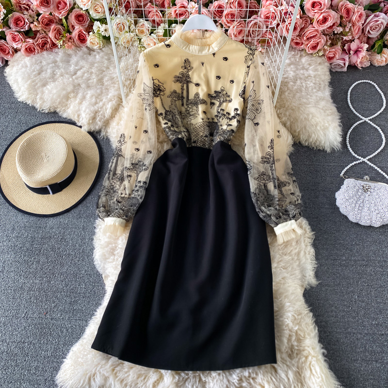 Cheap Dresses, Buy Quality Women’s Clothing Directly from China Suppliers:spring elegant temperament wood ear stand collar stitching embroidered mesh fake two piece waist slimming a line dress