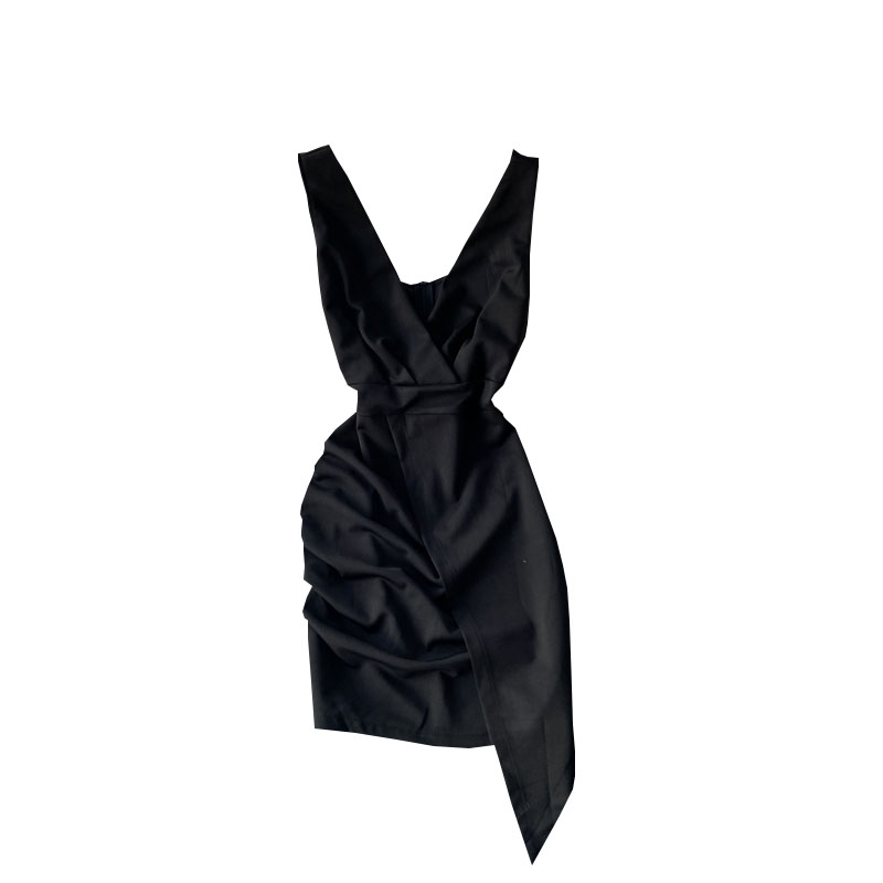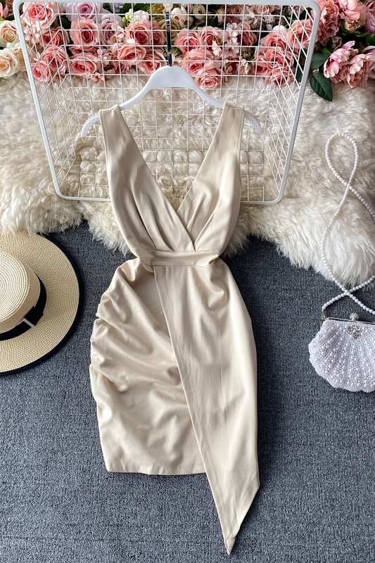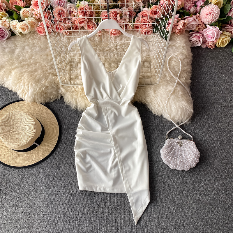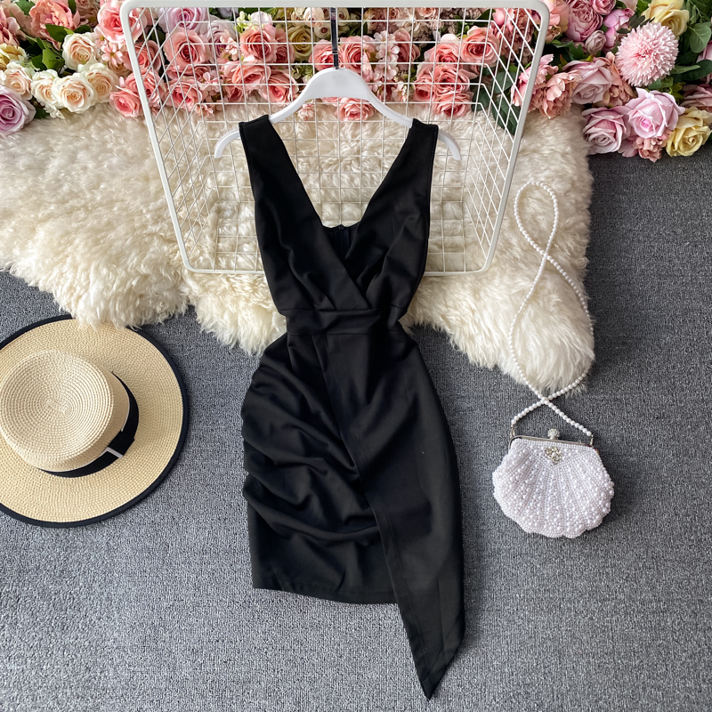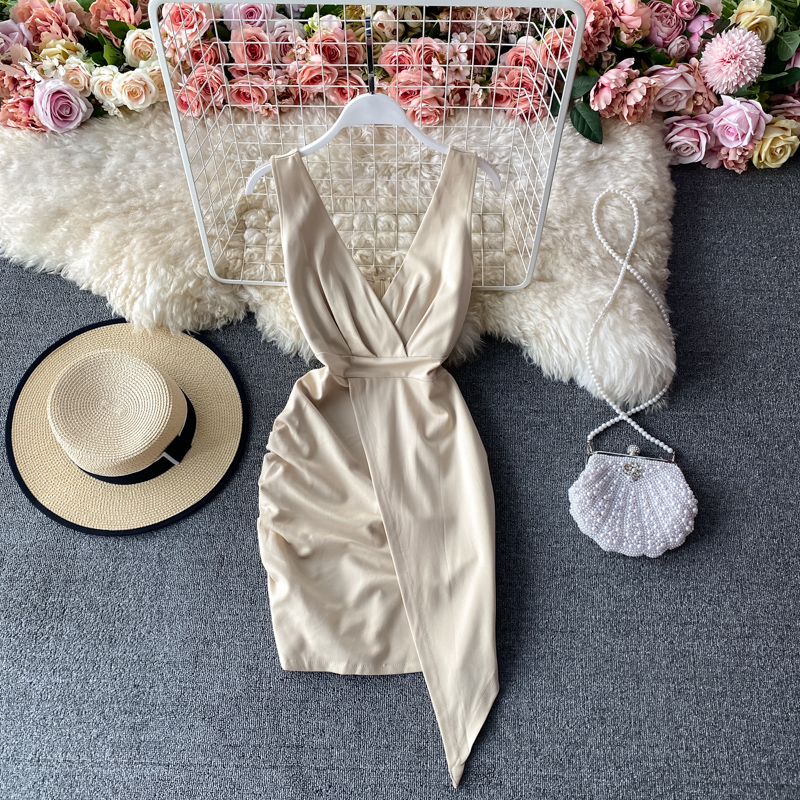 Nightclub Sexy V-neck Low-Cut Backless Slim Fit Irregular Slit Hip Skirt Base Skirt Suspender Dress for Women