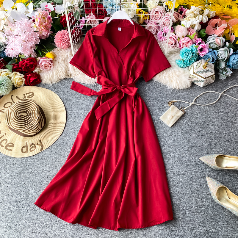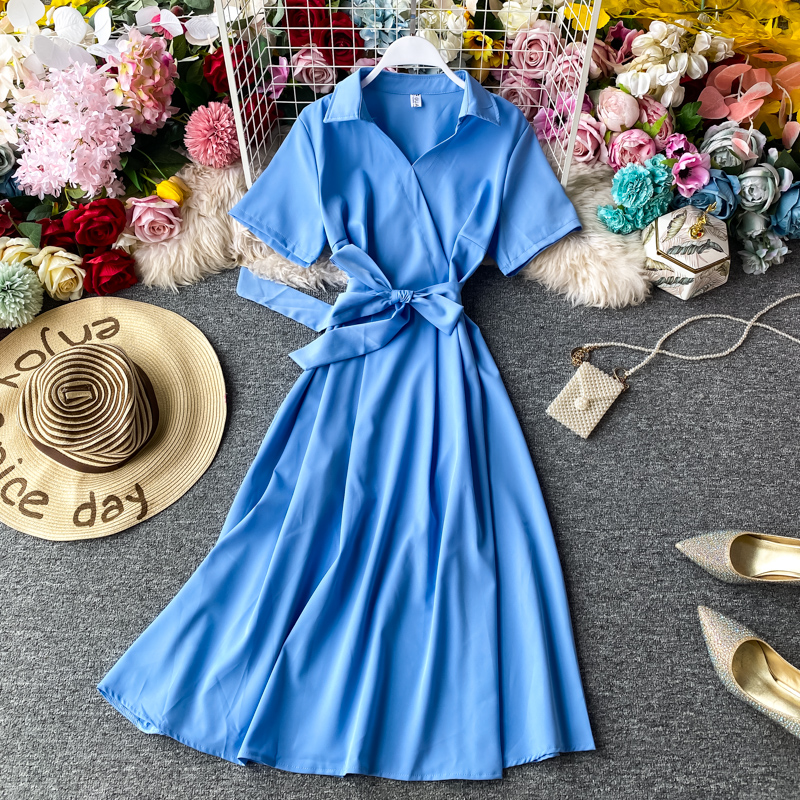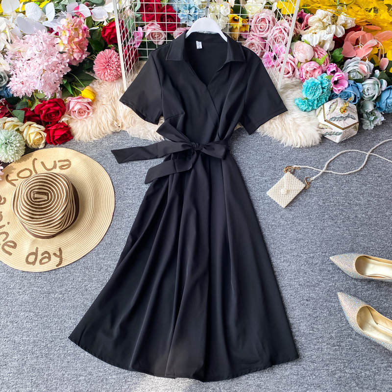 Cheap Dresses, Buy Quality Women’s Clothing Directly from China Suppliers:Lightly Mature V neck Dress New Summer Short Sleeve Dress Jung Ji Hoon French A line Skirt Doll Collar Fairy Dress