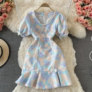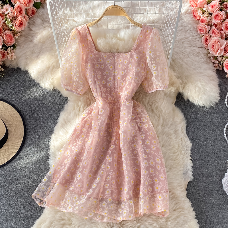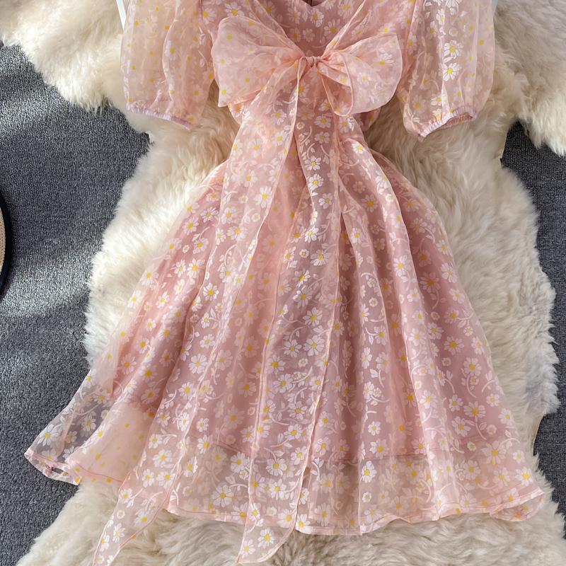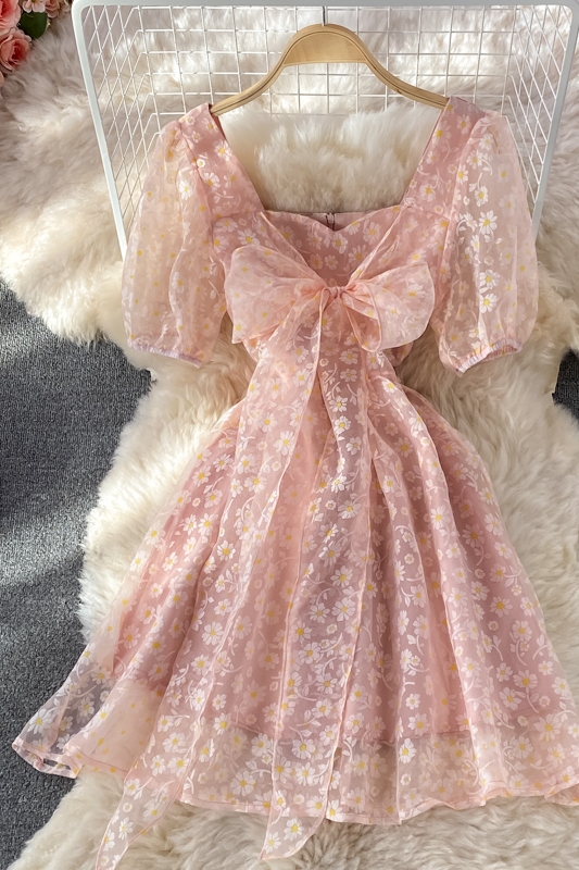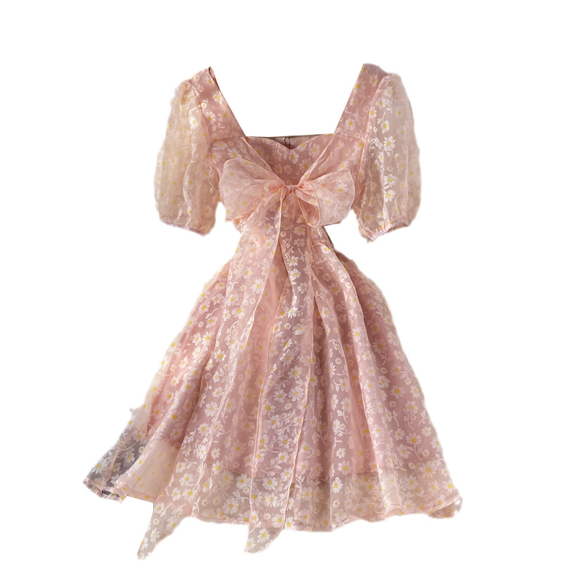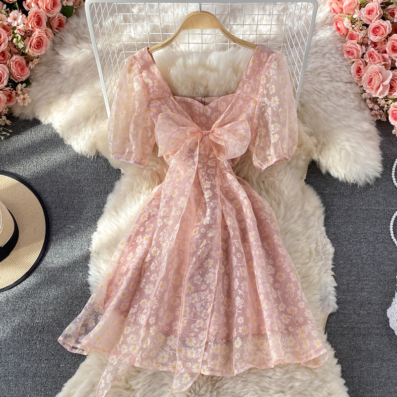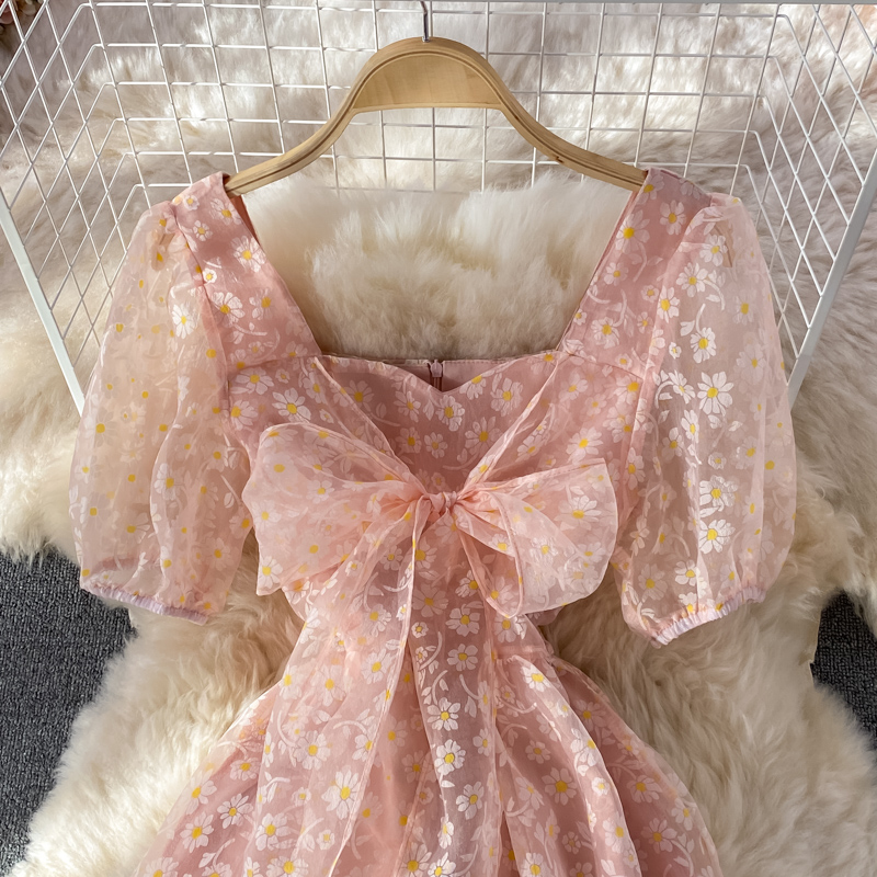 Cheap Dresses, Buy Quality Women’s Clothing Directly from China Suppliers:Organza Sweet Bow Fairy Square Collar Puff Sleeve Dress Summer New Puff Sleeve Princess Dress Short Skirt