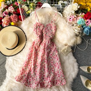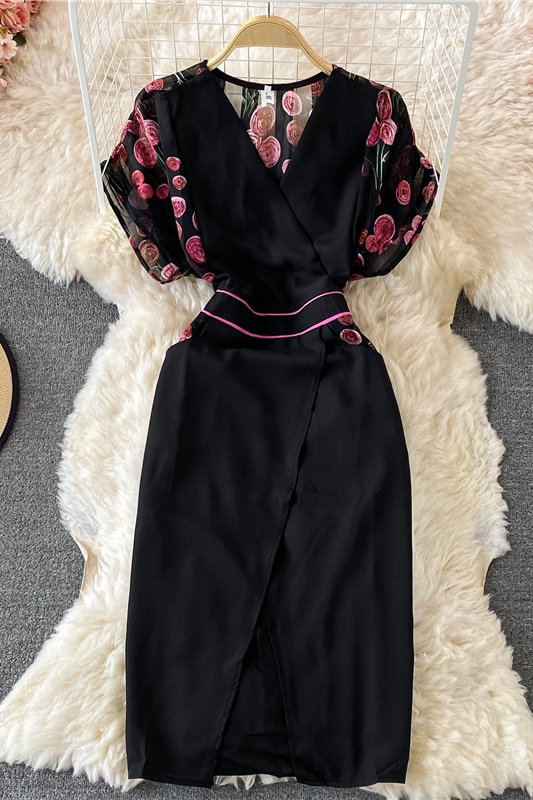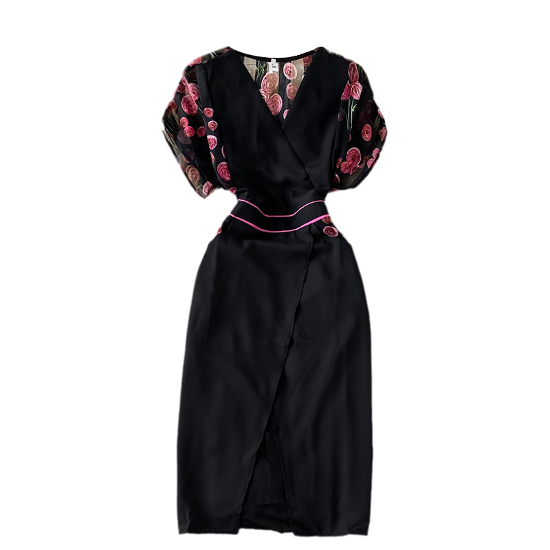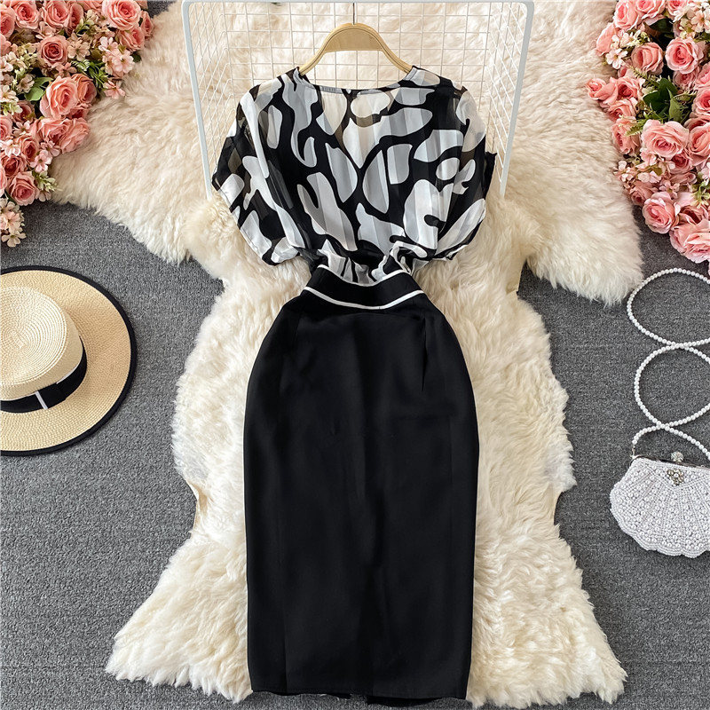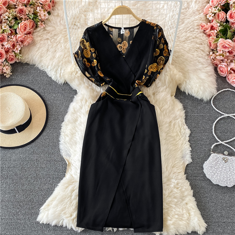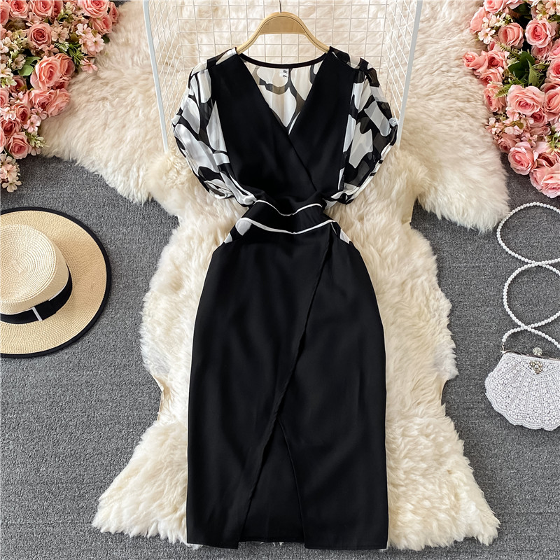 Cheap Dresses, Buy Quality Women’s Clothing Directly from China Suppliers:V neck Temperament Printed Chiffon Dress for Women Summer New Waist Slimming Women’s Split Skirt