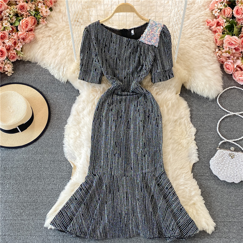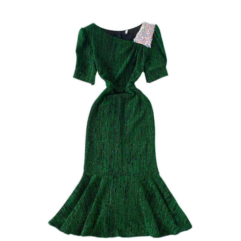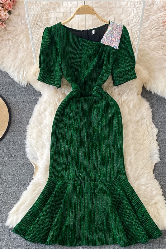 Cheap Dresses, Buy Quality Women’s Clothing Directly from China Suppliers:Elegant Bright Silk Shiny Slim Fishtail Sheath Dress Summer New Women’s Slim Fit Slimming Diagonal Collar Dress