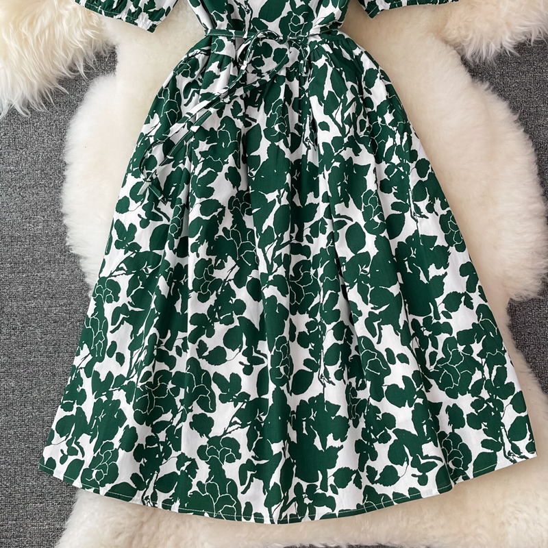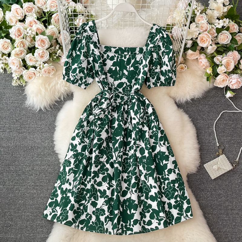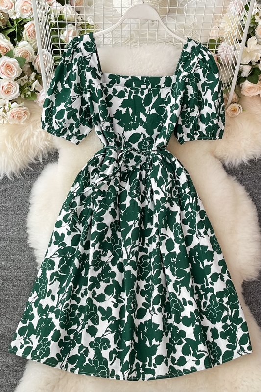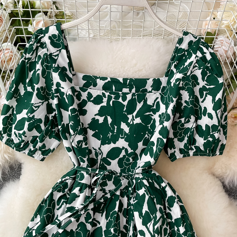 Cheap Dresses, Buy Quality Women’s Clothing Directly from China Suppliers:Korean Summer New Small Square Collar Floral Elegant Retro Loose Slimming Puff Sleeve Dress for Women