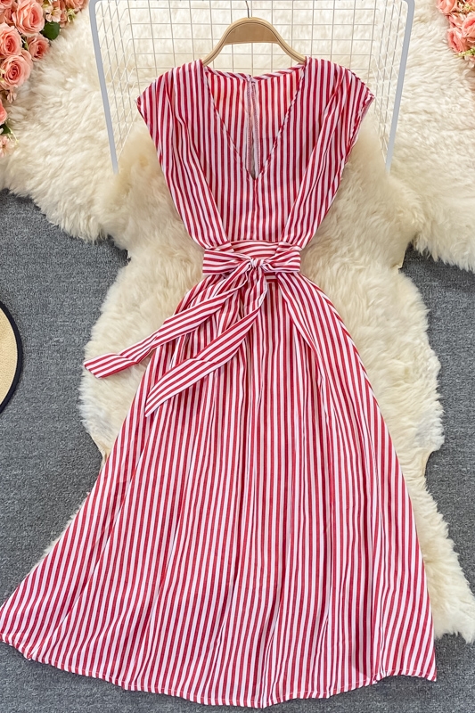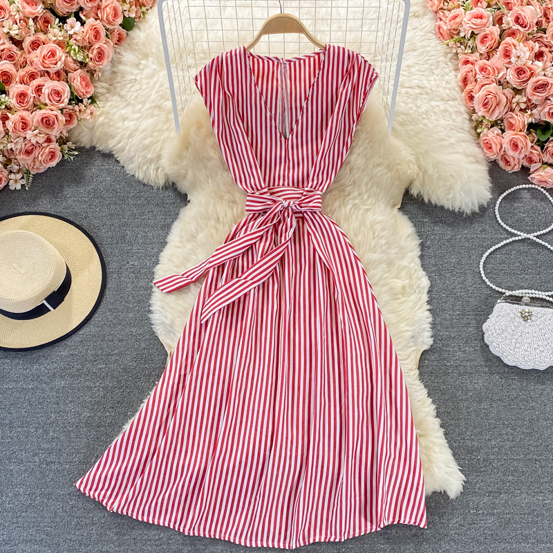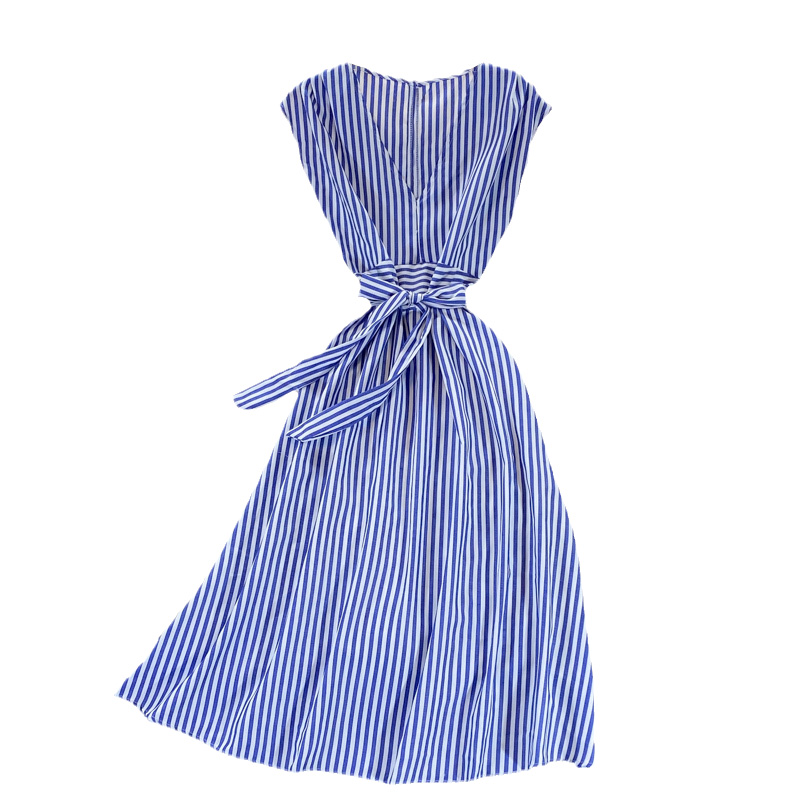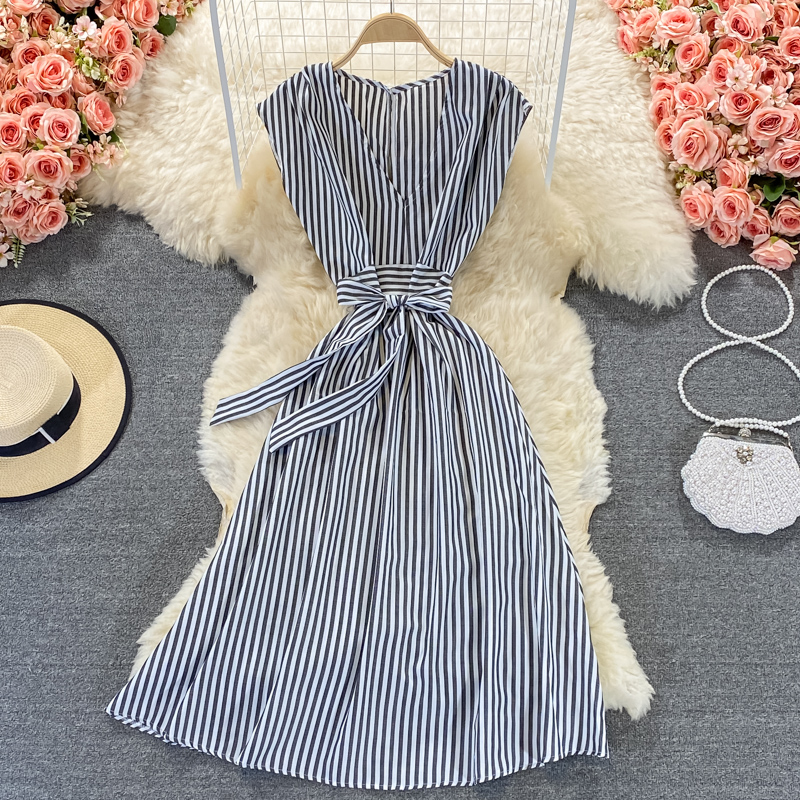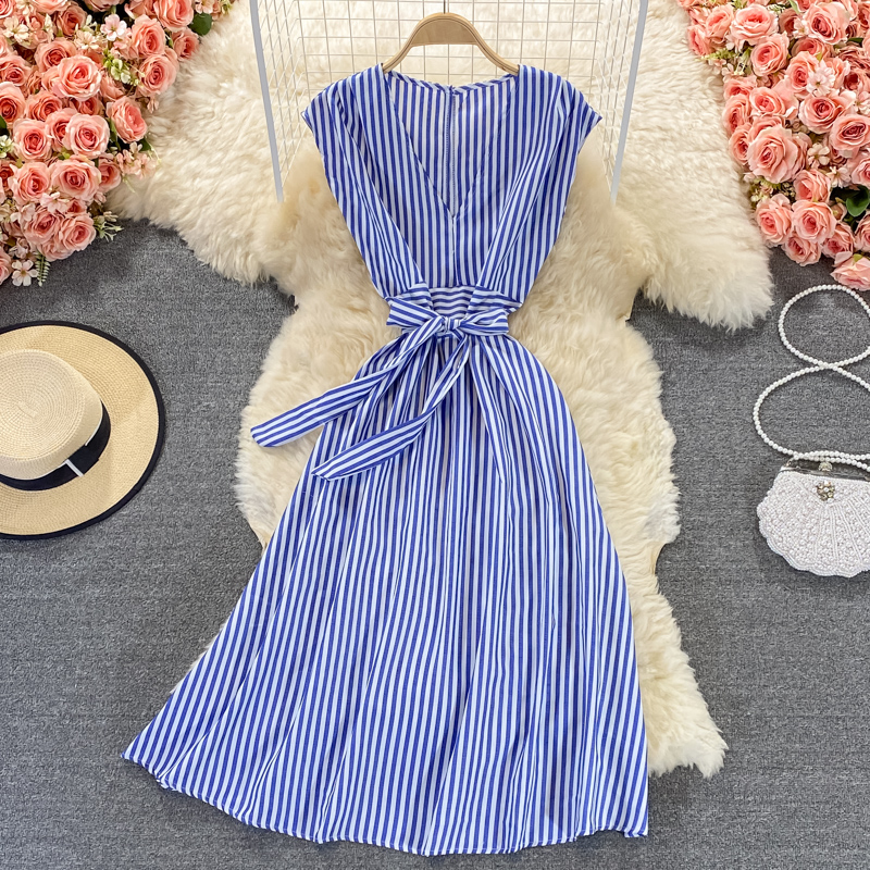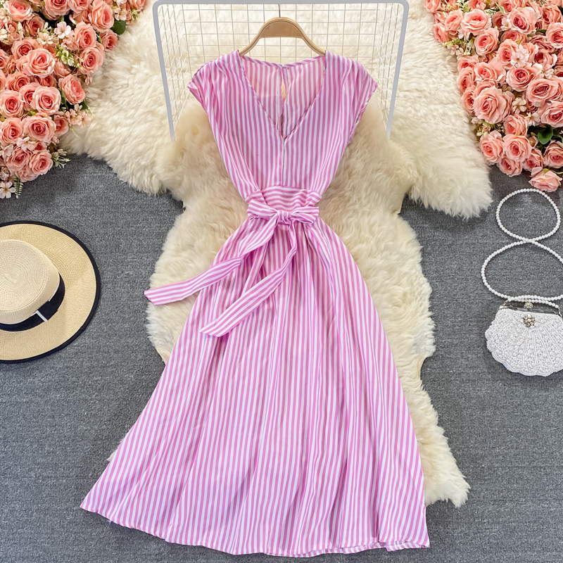 Cheap Dresses, Buy Quality Women’s Clothing Directly from China Suppliers:Royal sister light mature style striped V neck dress new women’s summer waist waist was thin and high temperament long skirt