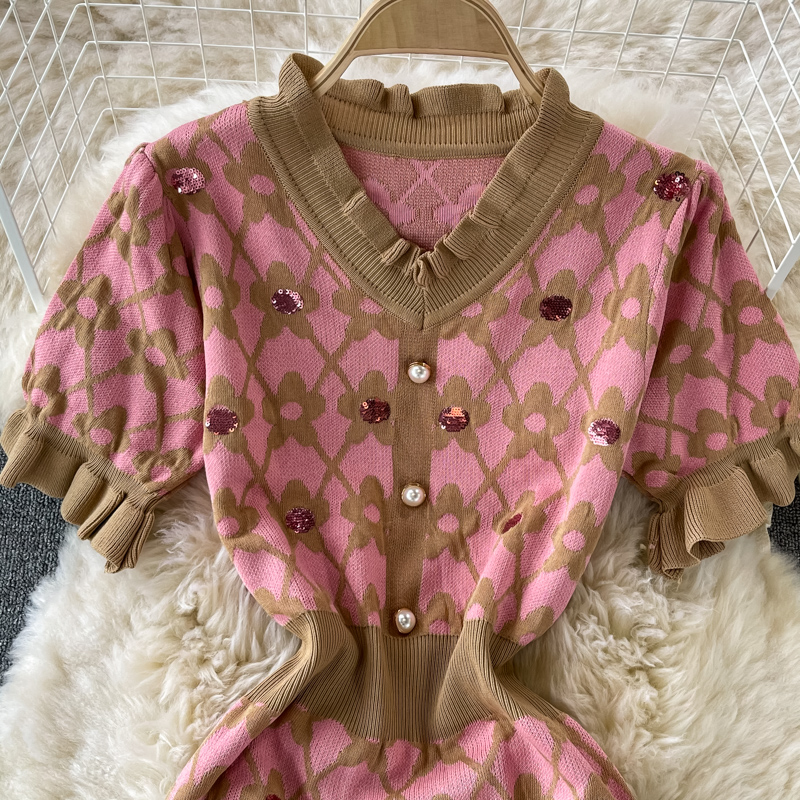 Cheap Dresses, Buy Quality Women’s Clothing Directly from China Suppliers:Gentle V neck Knitted Dress for Women Summer New Style Tight Waist Western Style Slimming Ruffled A line Skirt