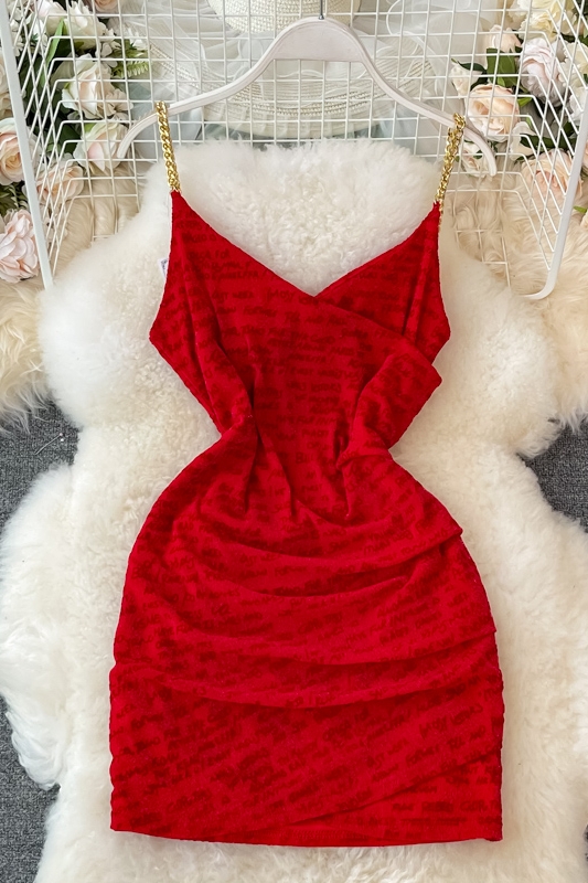 Cheap Dresses, Buy Quality Women’s Clothing Directly from China Suppliers:Small Sexy Low Cut Backless Chain Strap Skinny Sheath Short Skirt Letter Printed Dress Sleeveless Summer