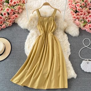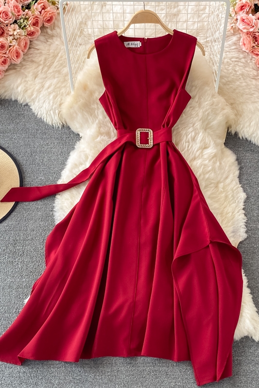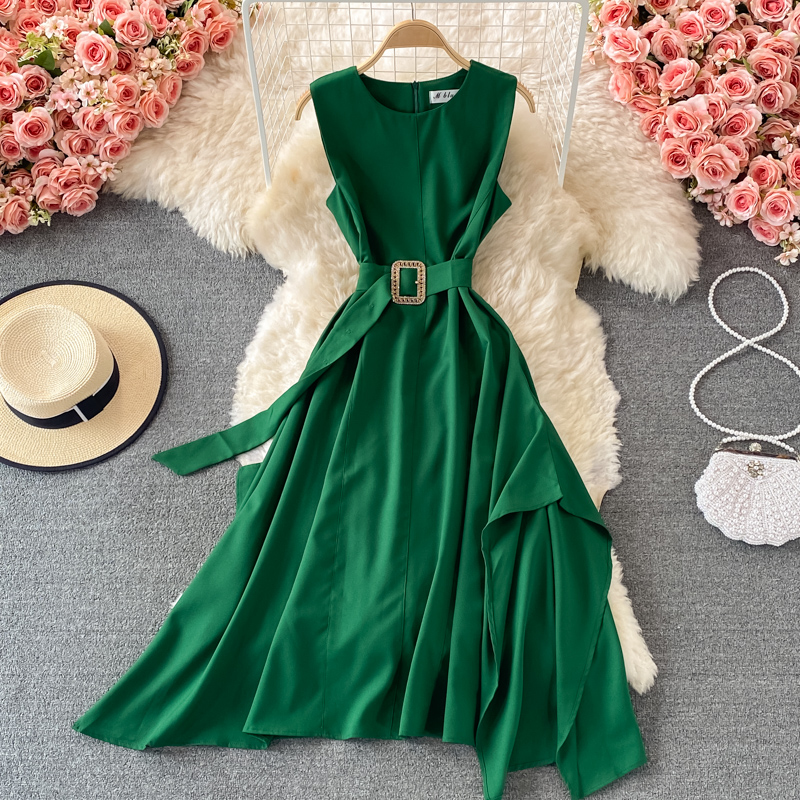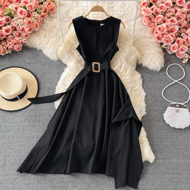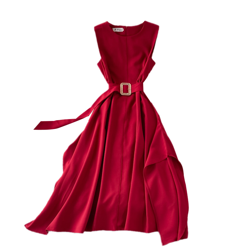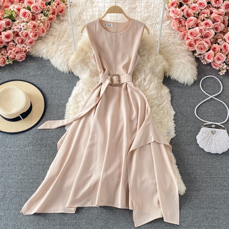Cheap Dresses, Buy Quality Women’s Clothing Directly from China Suppliers:French round Neck Dress Summer New Temperament Commute Tight Waist Slimming Retro over the Knee Irregular Swing Long Dress