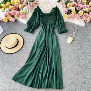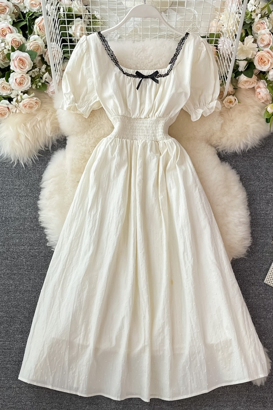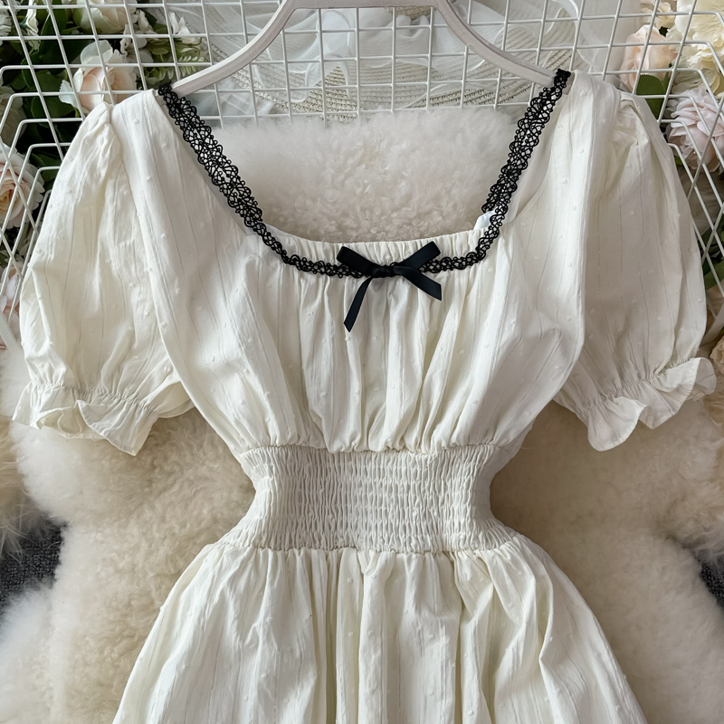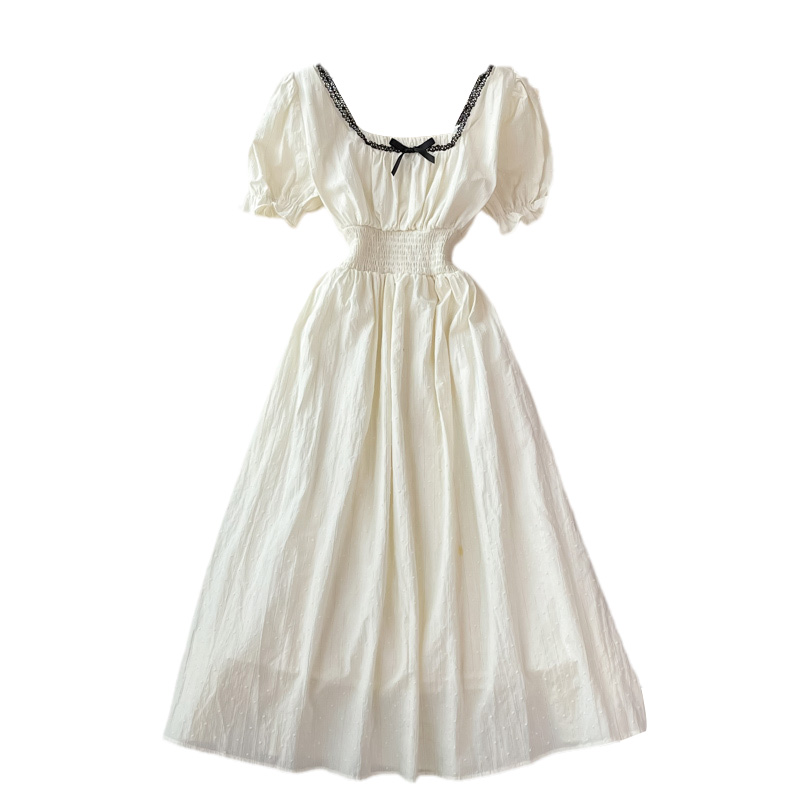 Cheap Dresses, Buy Quality Women’s Clothing Directly from China Suppliers:French Style Retro Square Collar Bow Puff Sleeve Dress Summer New Girl Age Reducing Sweet Large Swing Dress