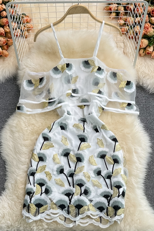 Cheap Dresses, Buy Quality Women’s Clothing Directly from China Suppliers:Summer New Socialite Temperament Sexy off the Shoulder Ruffled Suspender Dress off Shoulder Embroidered Sheath Dress