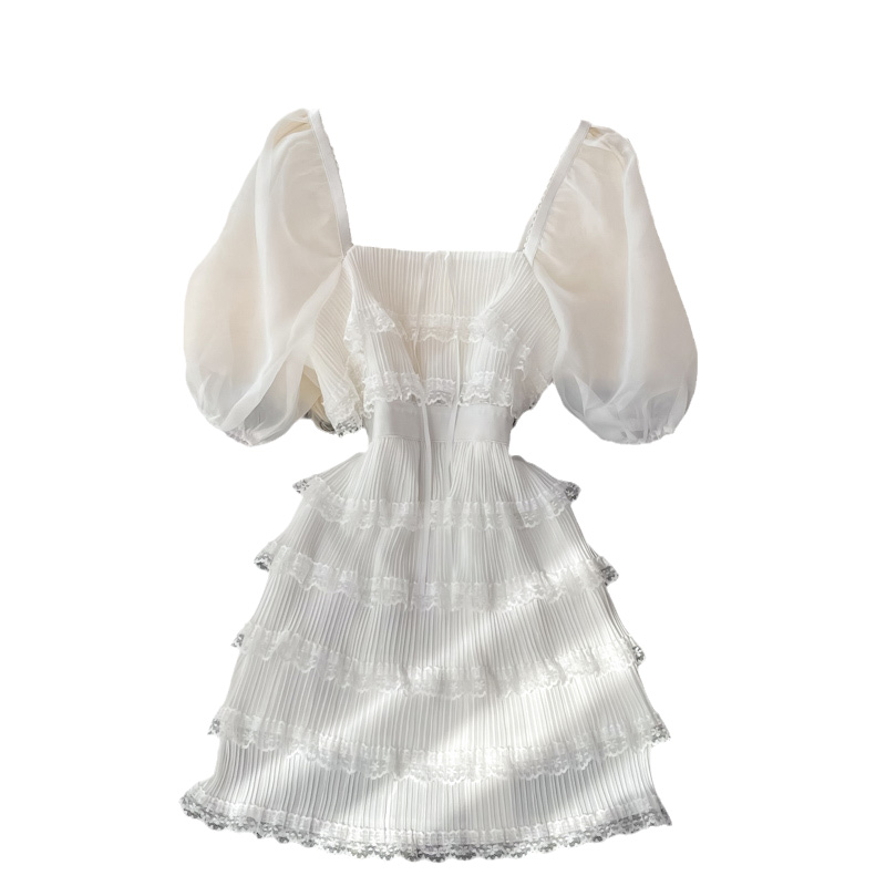 Cheap Dresses, Buy Quality Women’s Clothing Directly from China Suppliers:Gentle First Love Dress Summer New French Beach Seaside Vacation White Square Cut Collar Cake Dress