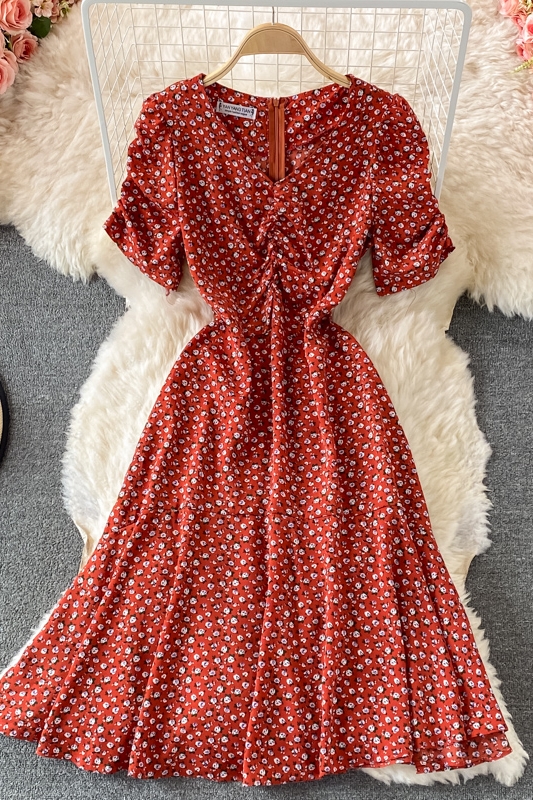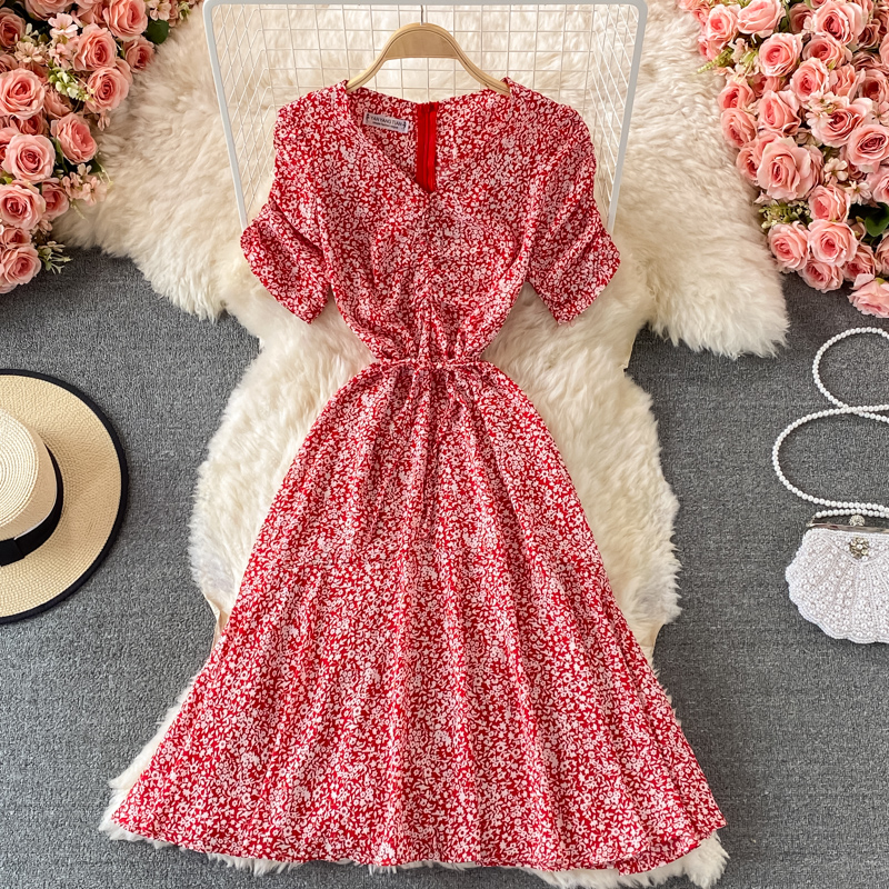 Cheap Dresses, Buy Quality Women’s Clothing Directly from China Suppliers:Summer Korean New Slimming Fitted Waist Sweet Puff Sleeve Gentle First Love V neck Floral Chiffon Dress