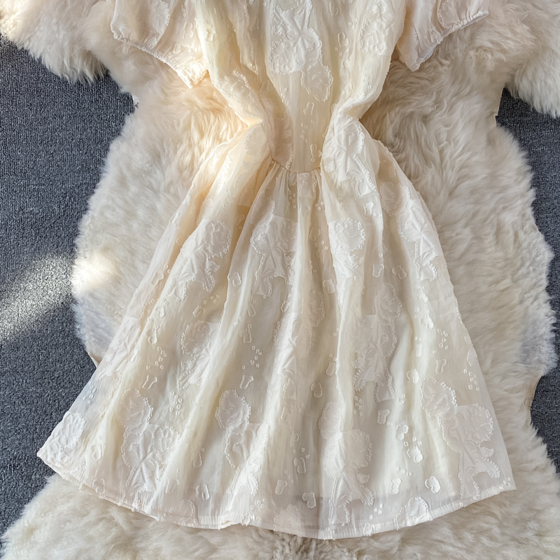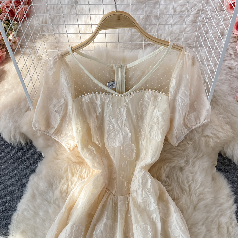 Evening Dress Summer Korean New Elegant Graceful Slim Fit Slimming Beaded V-neck Jacquard Dress Short Sleeve