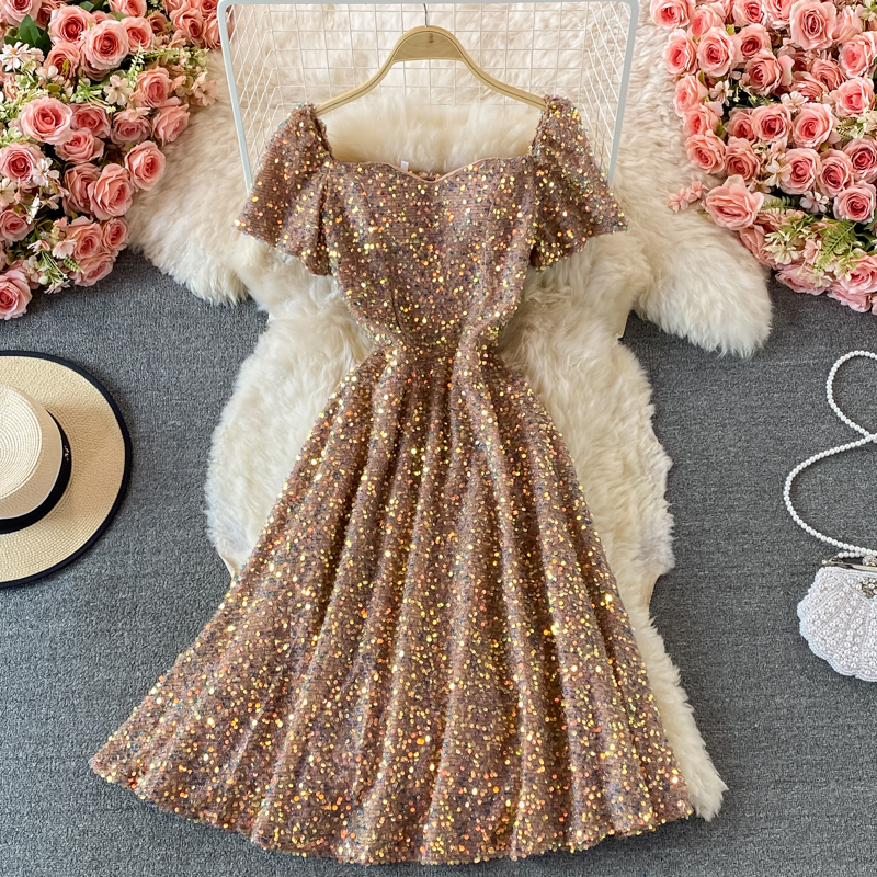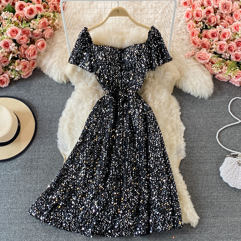 Cheap Dresses, Buy Quality Women’s Clothing Directly from China Suppliers:Banquet Evening Dress New Ladies Temperament Entry Lux High End Dress Sequined Fairy Elegant Large Swing Mid Length Skirt