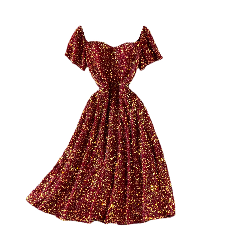 Banquet Evening Dress New Ladies Temperament Entry Lux High-End Dress Sequined Fairy Elegant Large Swing Mid-Length Skirt