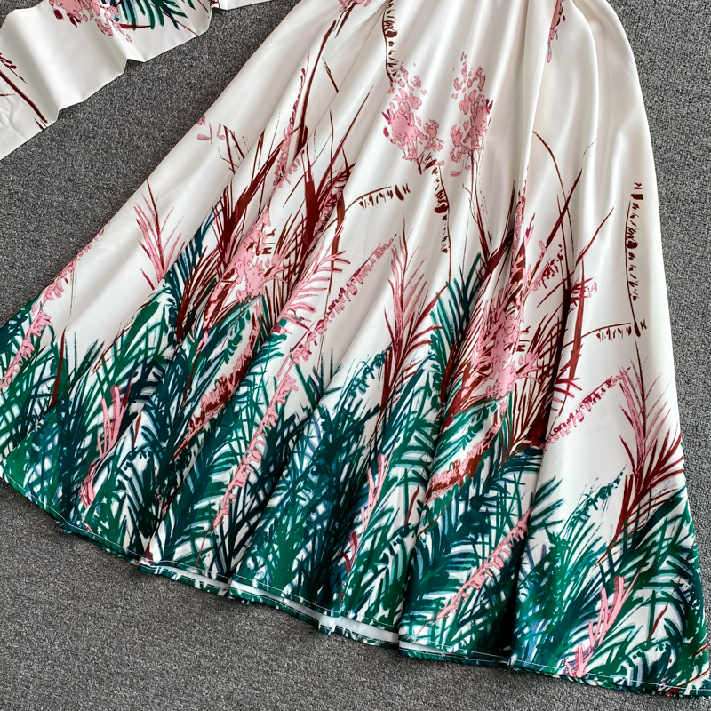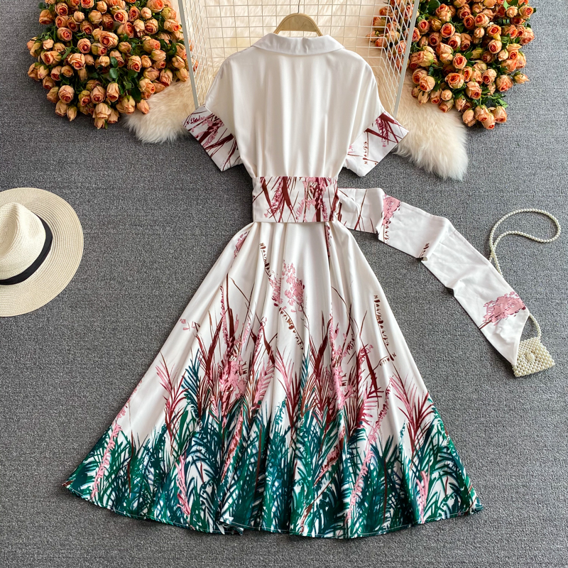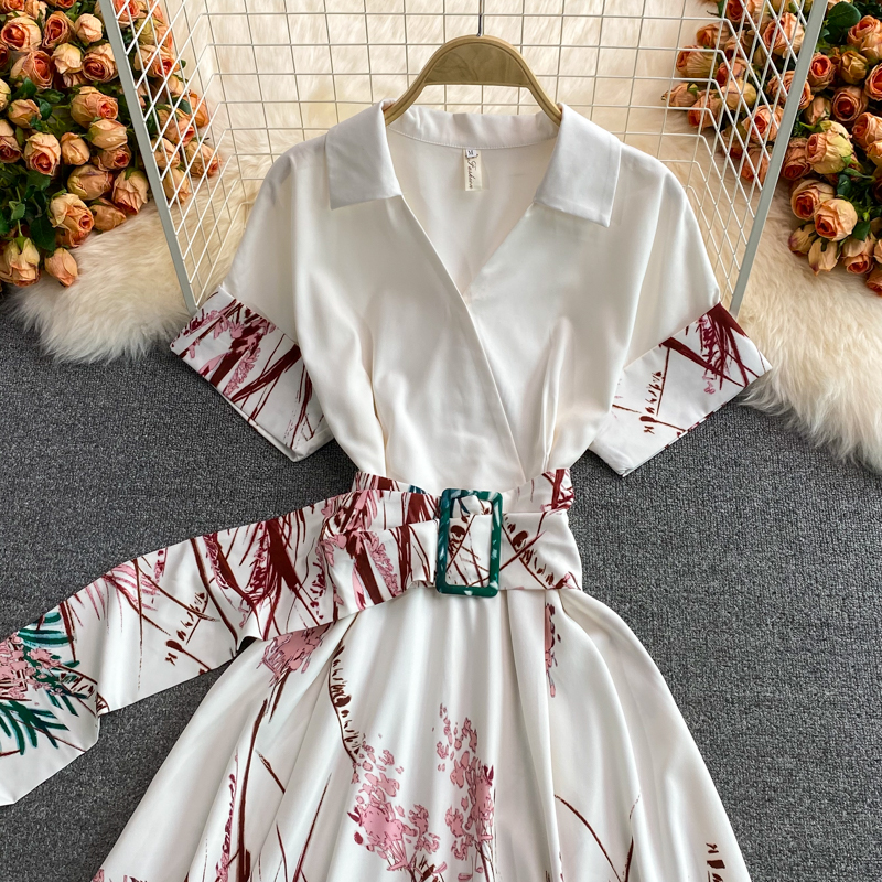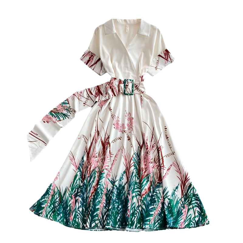 Cheap Dresses, Buy Quality Women’s Clothing Directly from China Suppliers:new spring and summer high end short sleeved elegant temperament retro print large length skirt V neck dress
