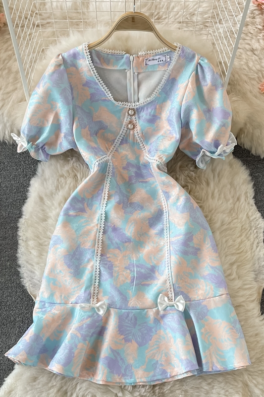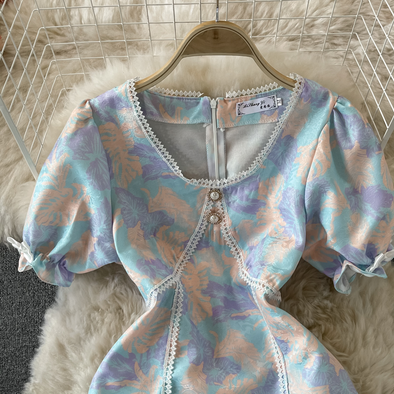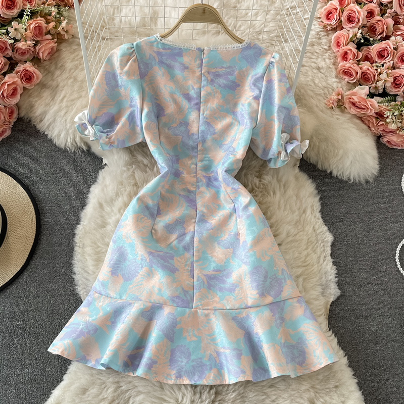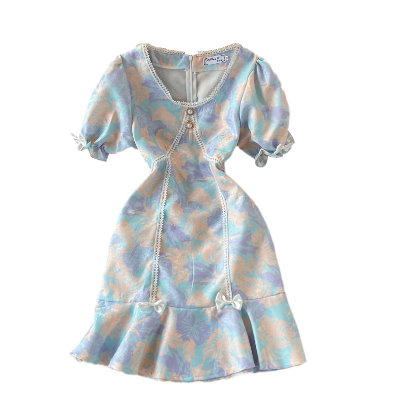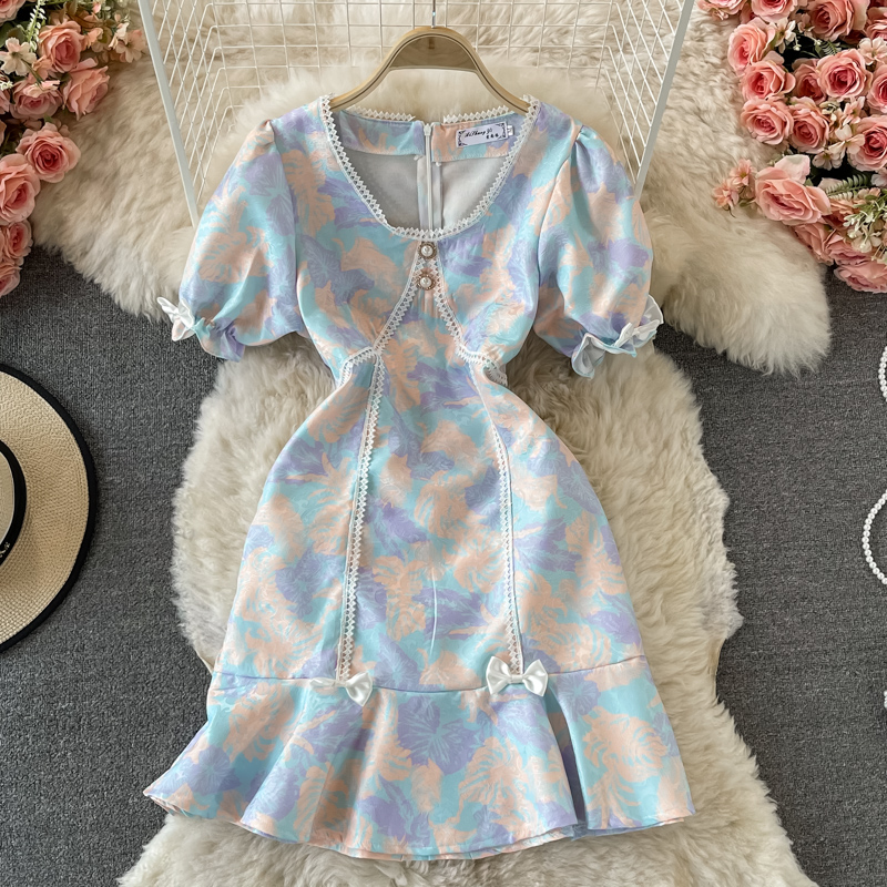 Cheap Dresses, Buy Quality Women’s Clothing Directly from China Suppliers:Fresh Sweet Waist Trimming Puff Sleeve Fishtail Sheath Dress for Women Summer New French Floral Skirt