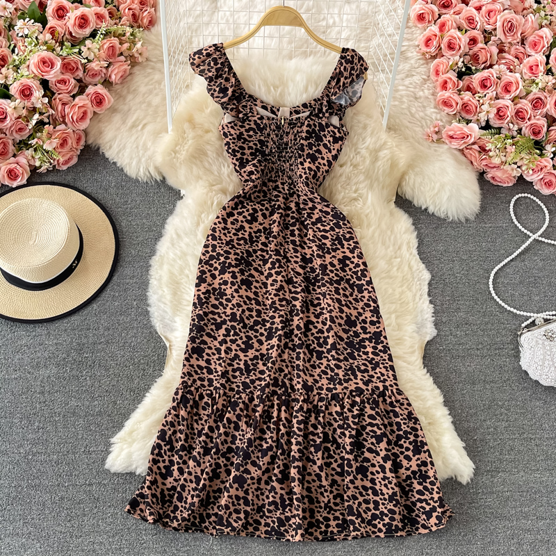 Cheap Dresses, Buy Quality Women’s Clothing Directly from China Suppliers:Leopard Print Dress Sleeveless Summer New Square Collar Backless Waist Trimming Slimming Slit French Halter Skirt