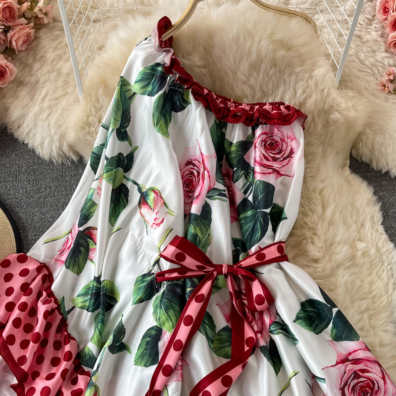 Personalized Ruffled Sloping Shoulder Backless Dress Loose Slim Fit Slimming Bohemian Seaside Holiday Large Swing Dress