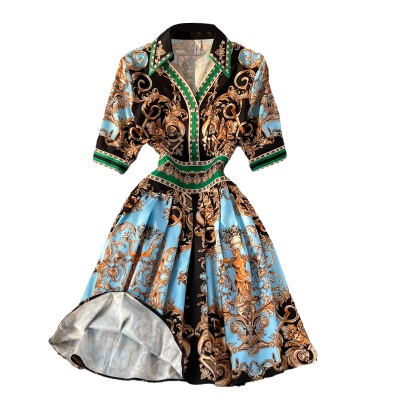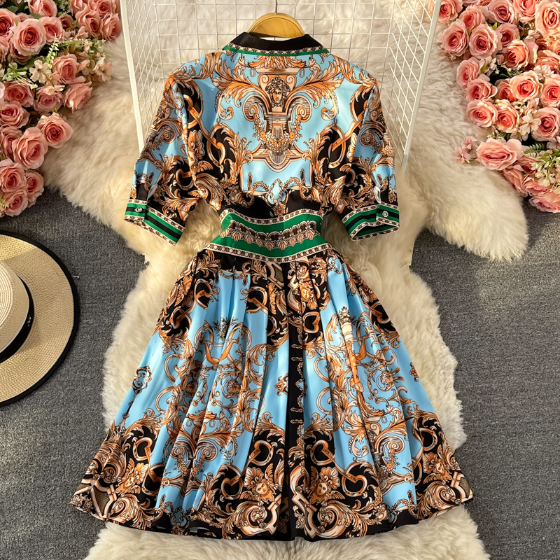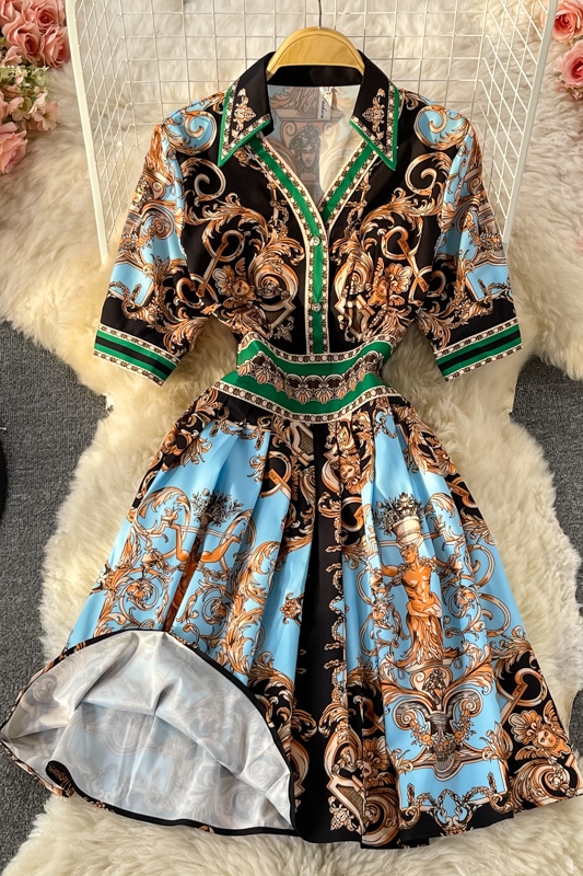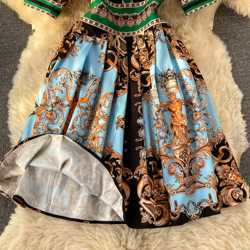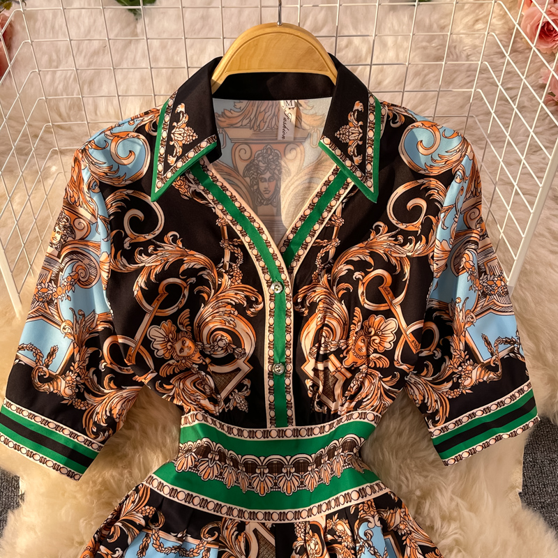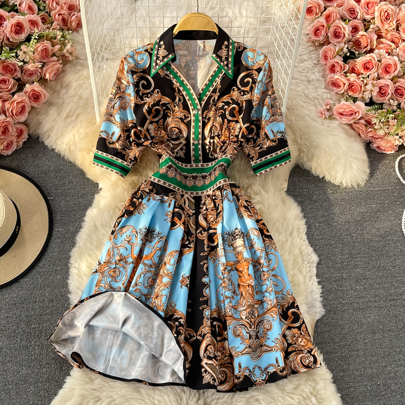 Cheap Dresses, Buy Quality Women’s Clothing Directly from China Suppliers:Retro Totem Printed Dress Long Sleeve Spring and Autumn New Ethnic Style Mid Length Polo Collar Shirt Dress
