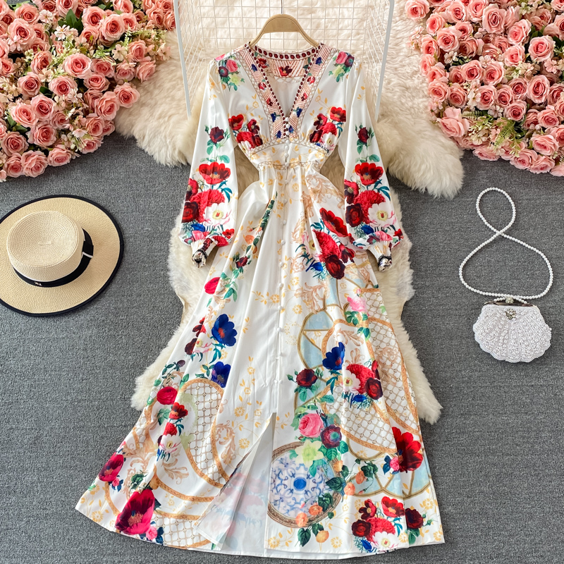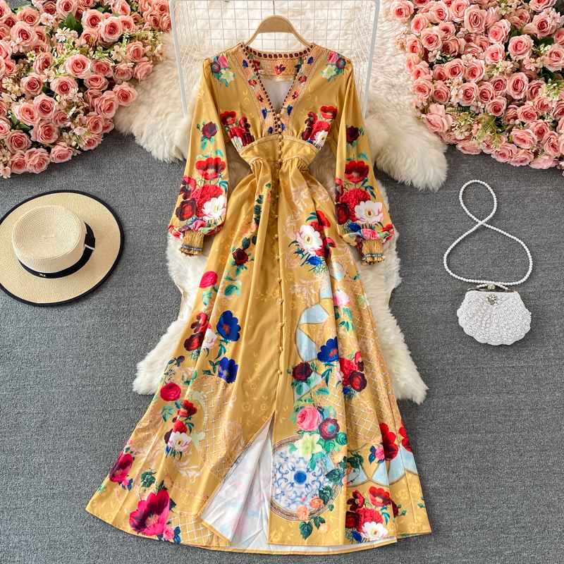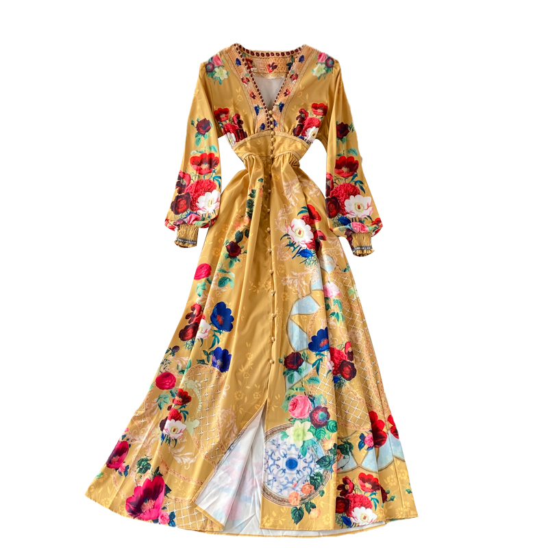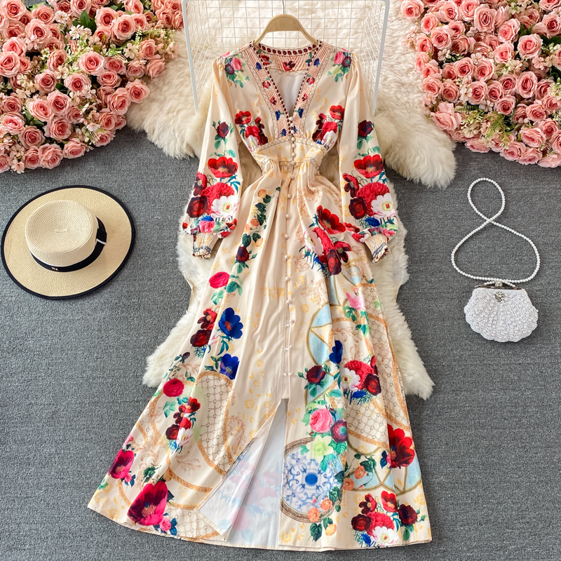 Cheap Dresses, Buy Quality Women’s Clothing Directly from China Suppliers:Spring and Autumn Retro European American Style V neck Long Sleeve Waist Slimming Dress Elegant Graceful Swing Long Dress