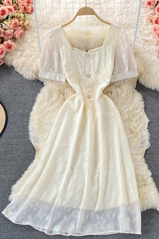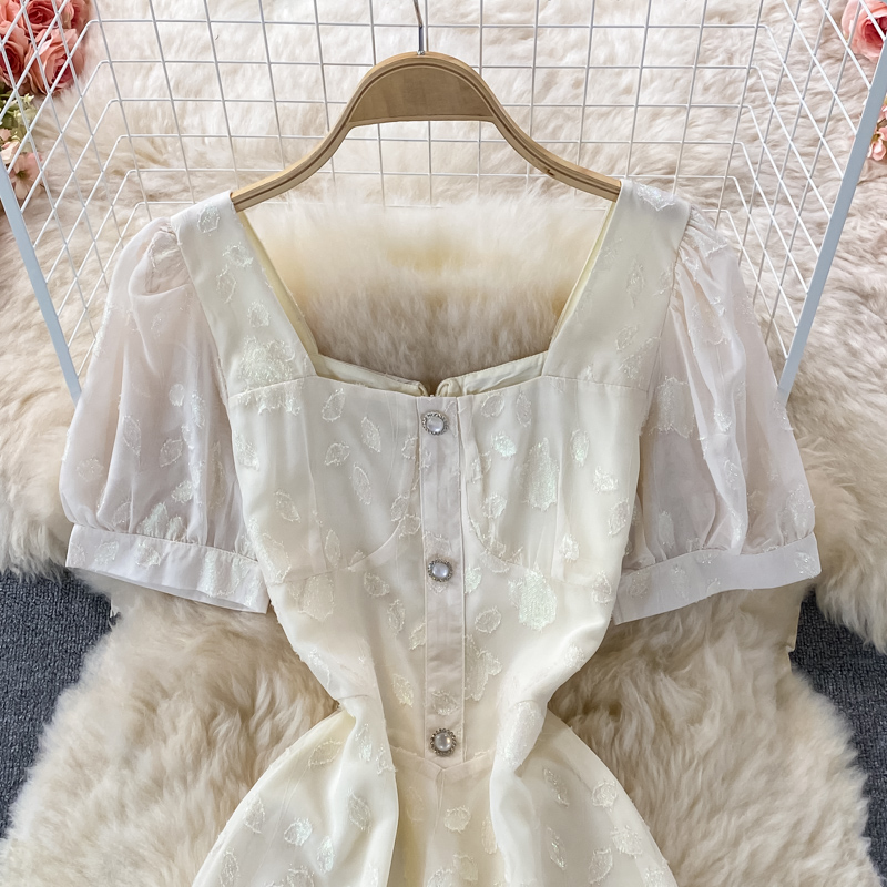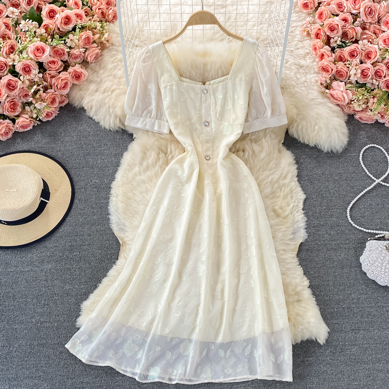 Cheap Dresses, Buy Quality Women’s Clothing Directly from China Suppliers:Summer New French Style Gentle Square Collar Dress Short Sleeve Slimming Slim Fit below the Knee White First Love Dress