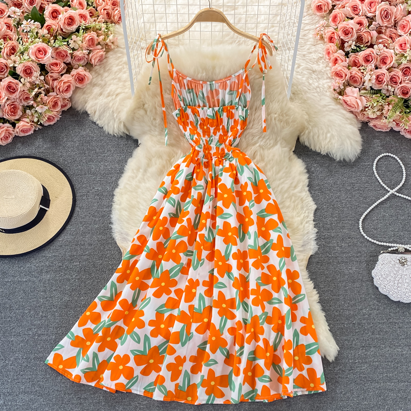 Cheap Dresses, Buy Quality Women’s Clothing Directly from China Suppliers:Seaside Holiday Beach Dress Women’s Summer New Korean Style French First Love Suspender Dress Mori Style Floral Dress
