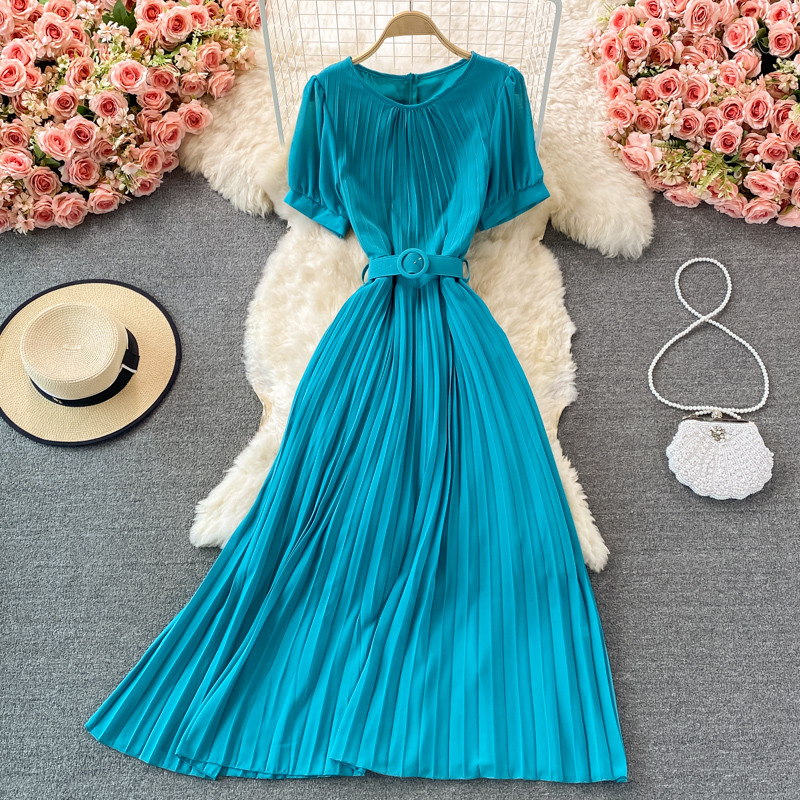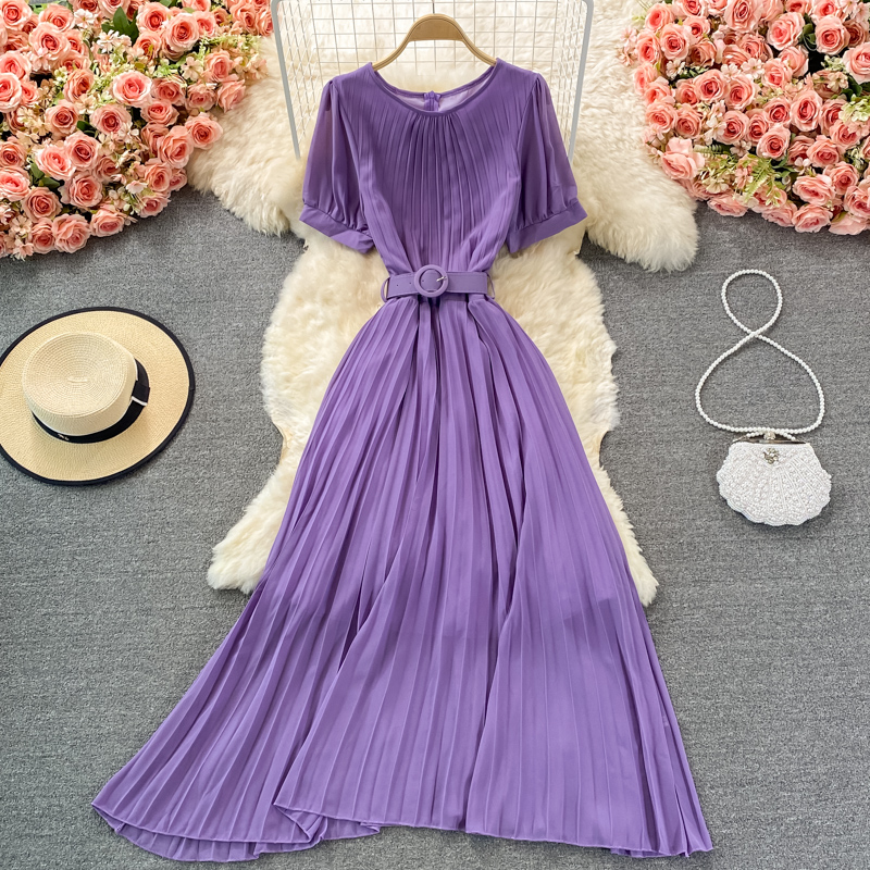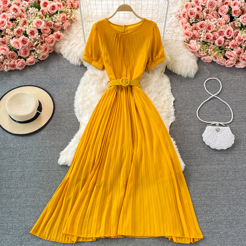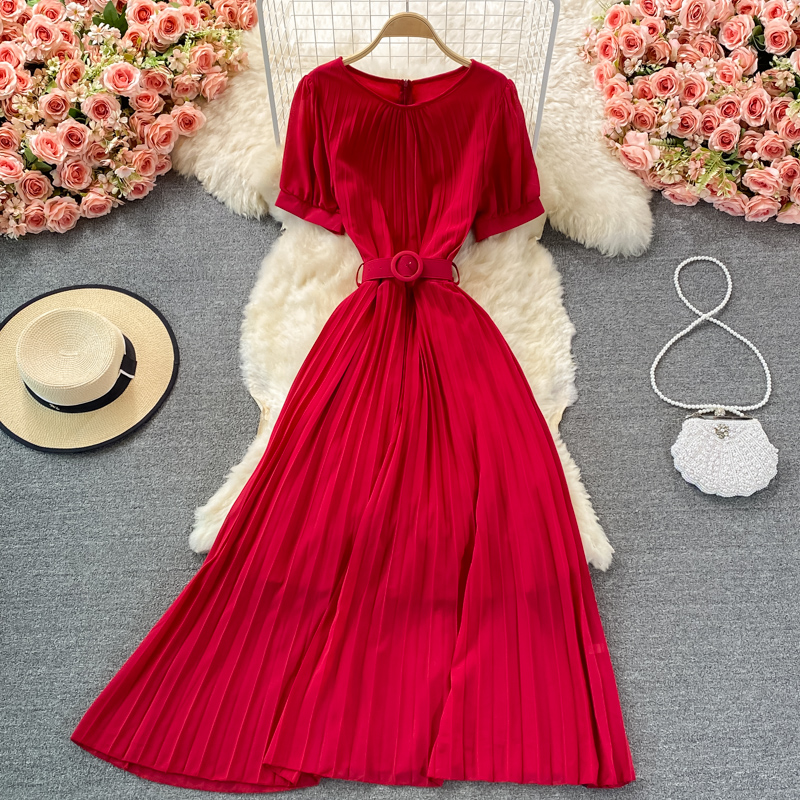 Cheap Dresses, Buy Quality Women’s Clothing Directly from China Suppliers:Waist Slimming Elegant Slightly Mature Style Pleated Dress Short Sleeve Summer New Elegant Graceful Long Expansion Skirt