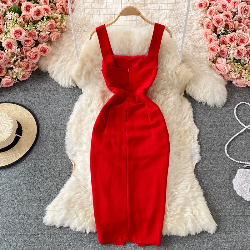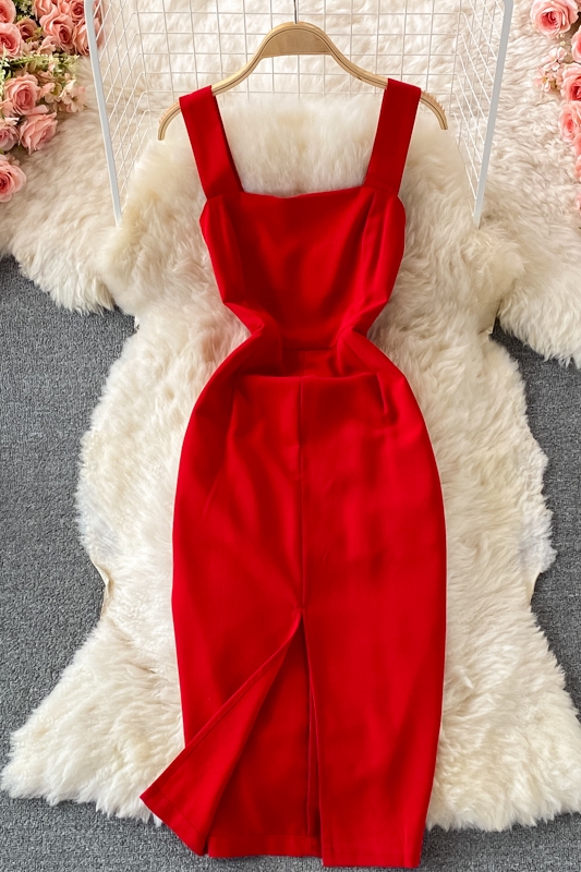 Cheap Dresses, Buy Quality Women’s Clothing Directly from China Suppliers:Summer New Lightly Mature Backless Suspender Dress Summer Overknee Mid Length Split Sheath Dress Sleeveless