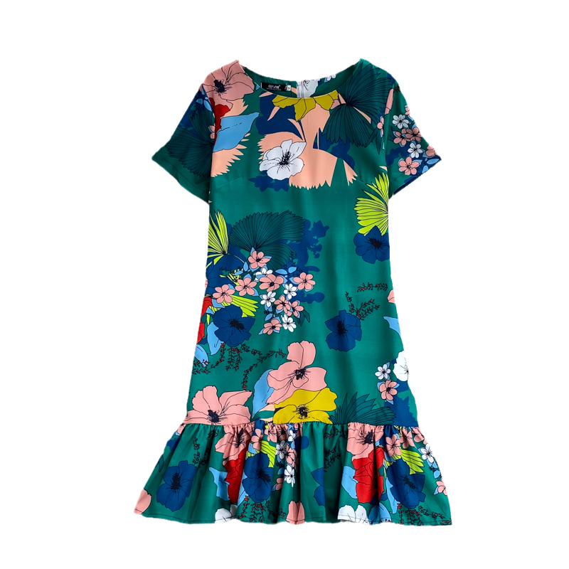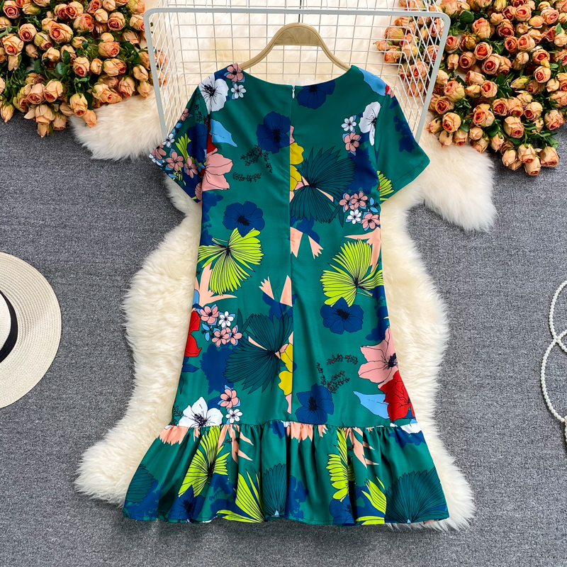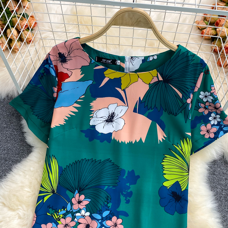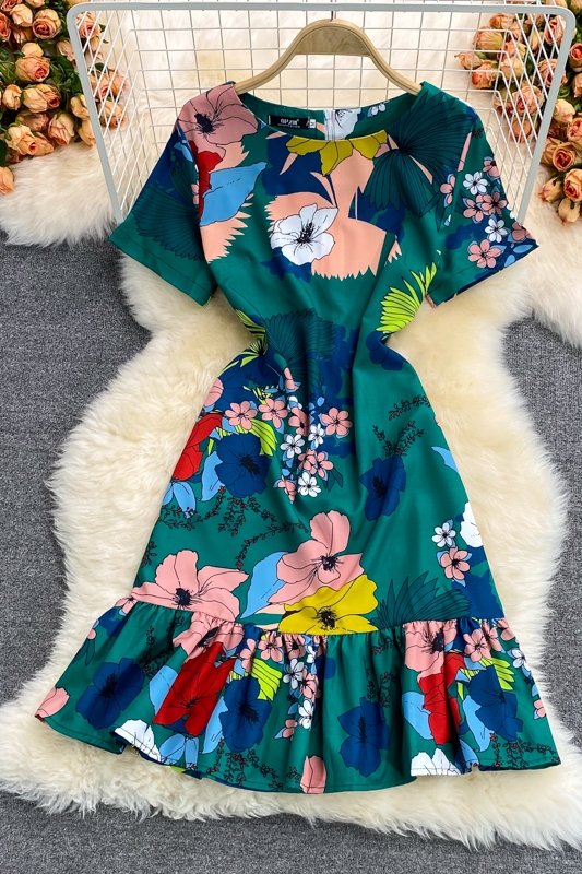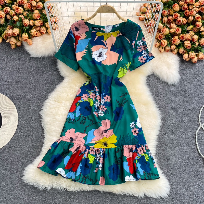 Cheap Dresses, Buy Quality Women’s Clothing Directly from China Suppliers:summer New Elegant Graceful round Neck Short Sleeve Floral Mid Length Slim Fit Slimming Flounce Dress
