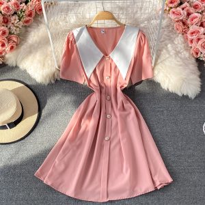 Cheap Dresses, Buy Quality Women’s Clothing Directly from China Suppliers:Summer New Tea Break French First Love Sweet Gentle Fresh Fairy Square Collar Puff Sleeve Lace Dress